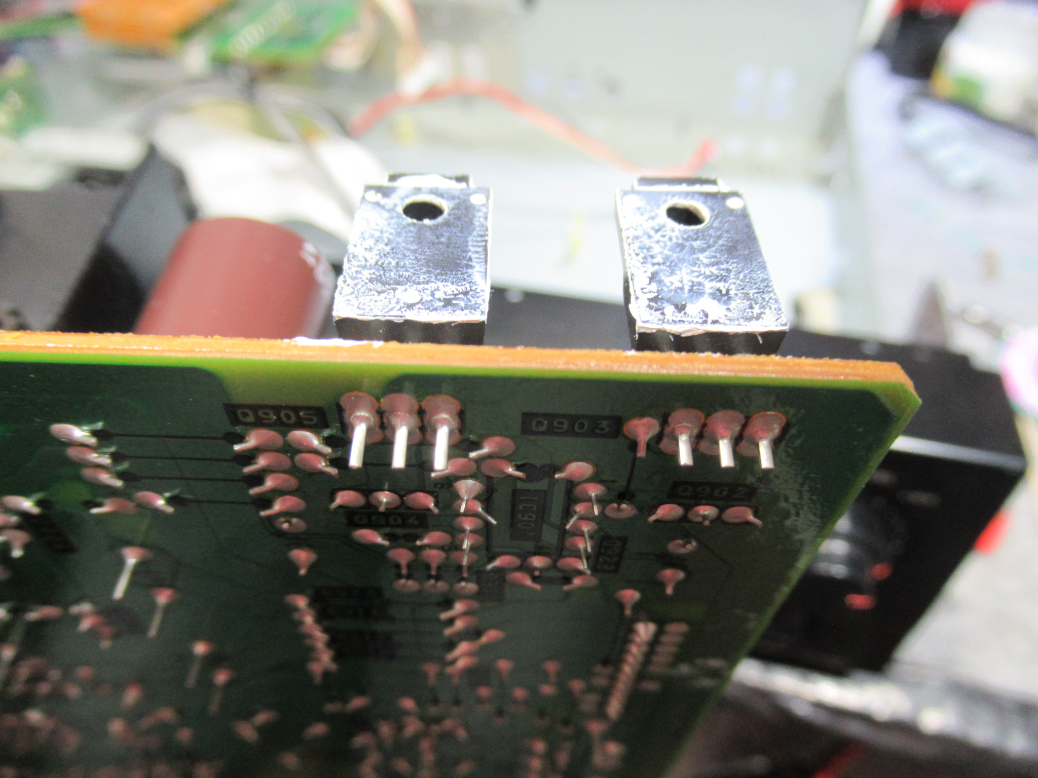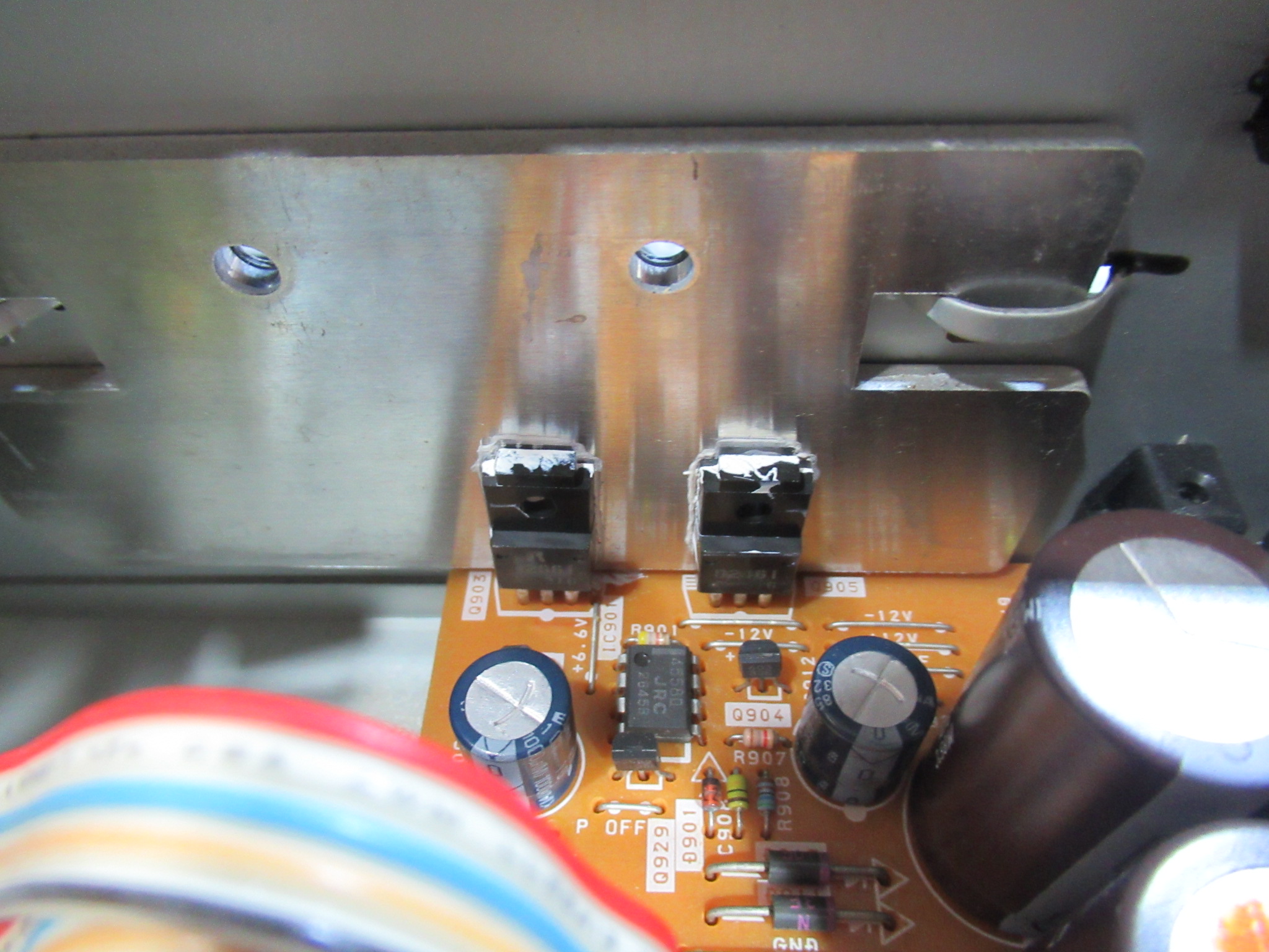 リヤパネルにはアルミ製の放熱板が取り付けられていて、そこに電源用のパワートランジスタがあります。ここが原因と考えられます。