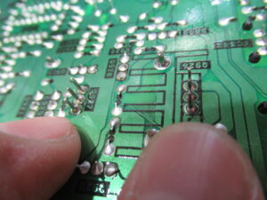 基板上にはもう2か所、放熱板が取り付けられているトランジスタがあります。そこもわずかに半田割れの兆候が見られましたので再半田しました。