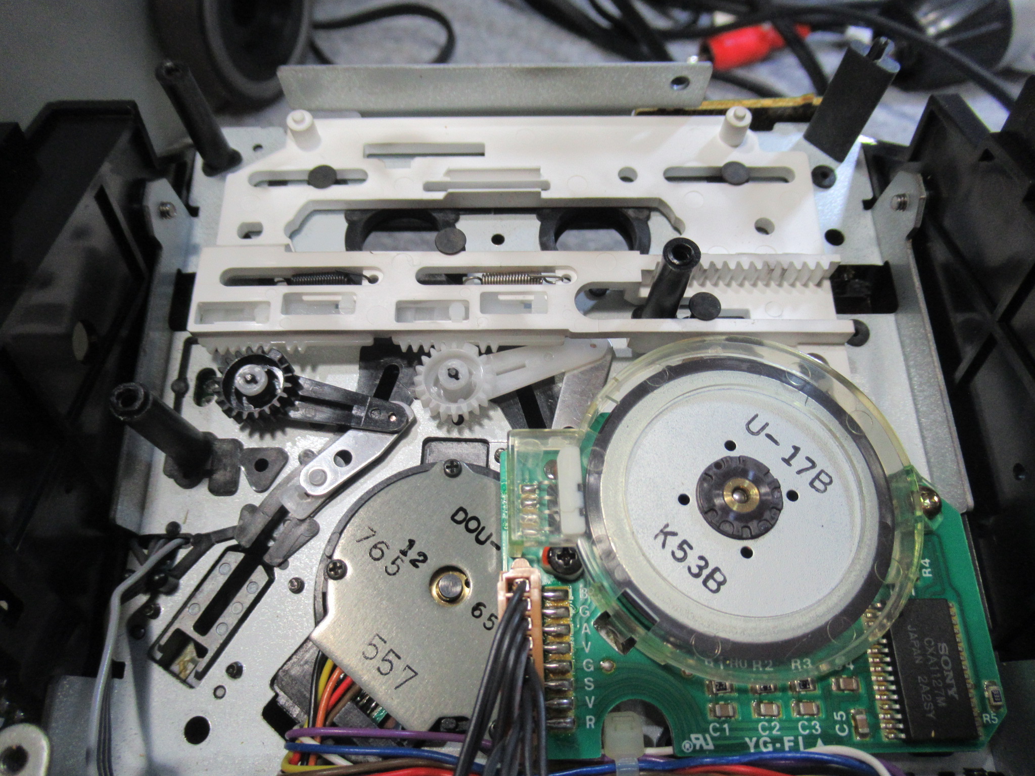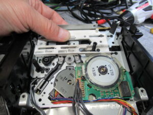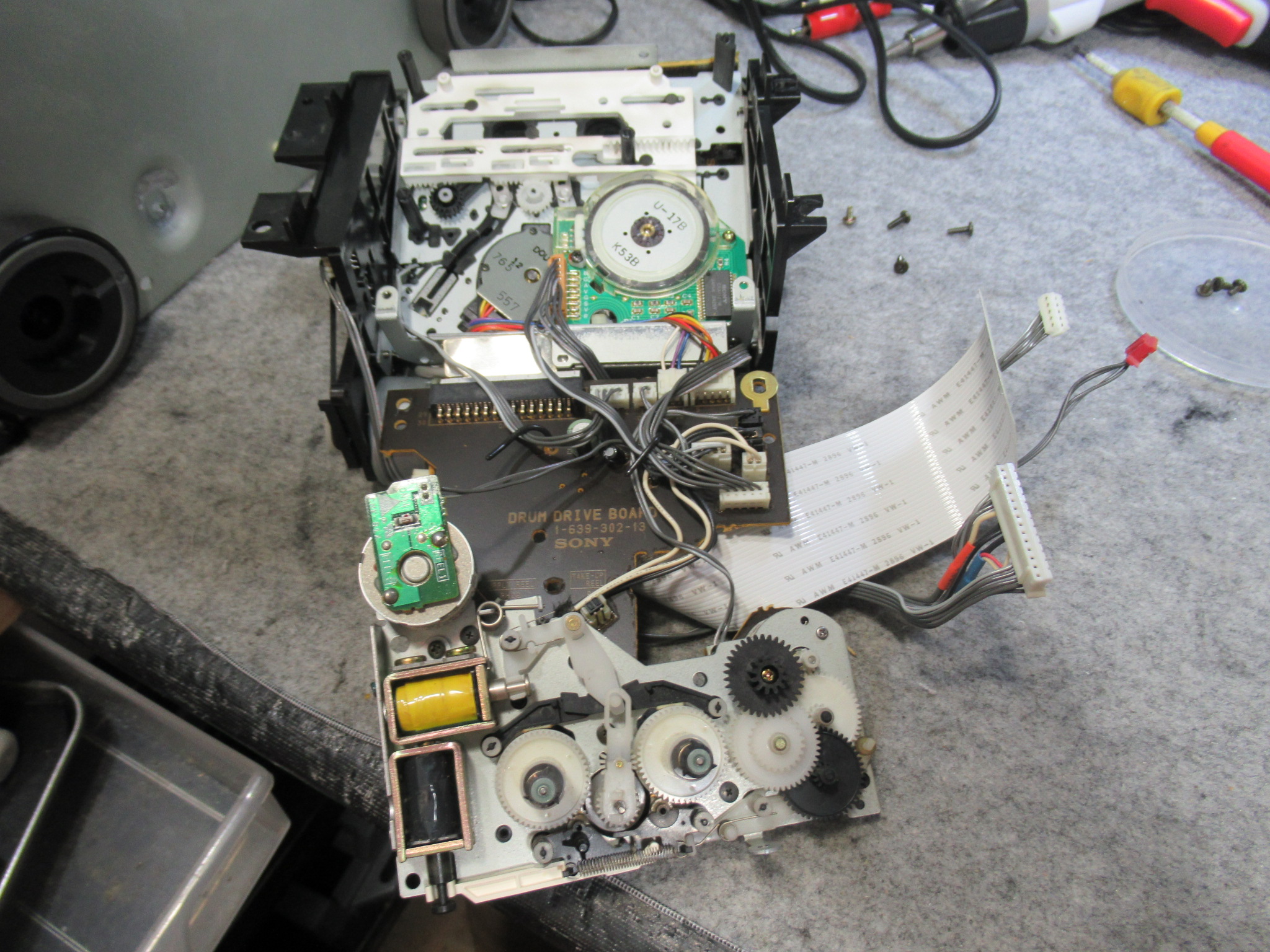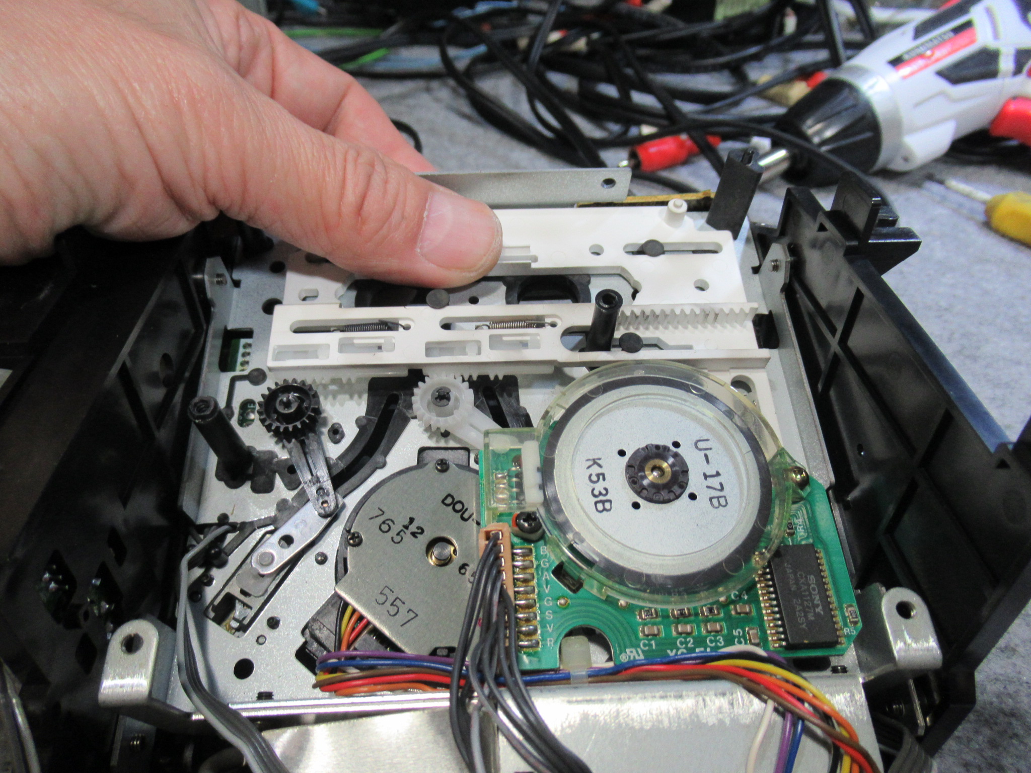 これで電源は治りましたが、イジェクトしてもすぐにトレイが閉まってしまいます。グリス切れやベルトの伸びが原因ですので処置が必要です。