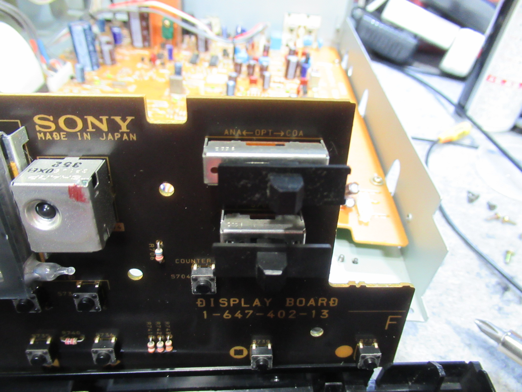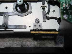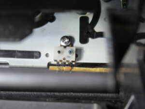 写真中央のカートリッジ検出スイッチに接点復活剤を処置します。