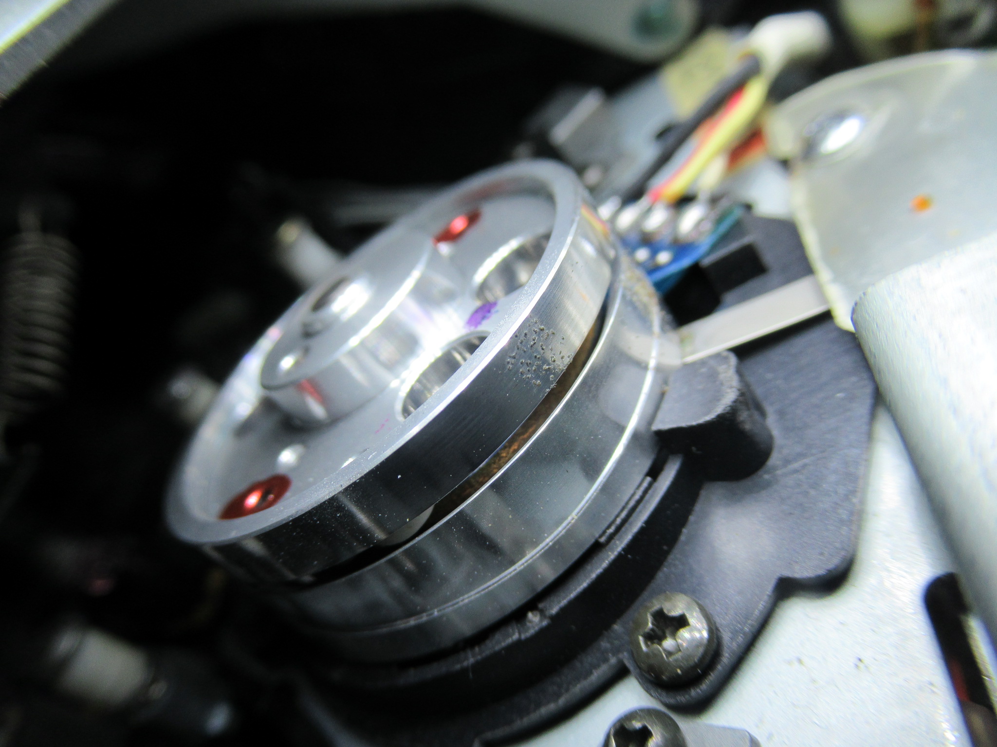 案の定、回転ドラム表面が侵されていてザラザラになっています。楊枝と研磨剤を用いて、ザラツキが無くなるまで磨きます。