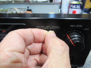ヘッドホンVOLにガリが見られますので、背面の隙間から接点復活剤を処置します。