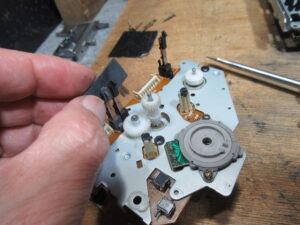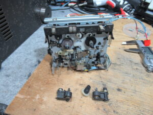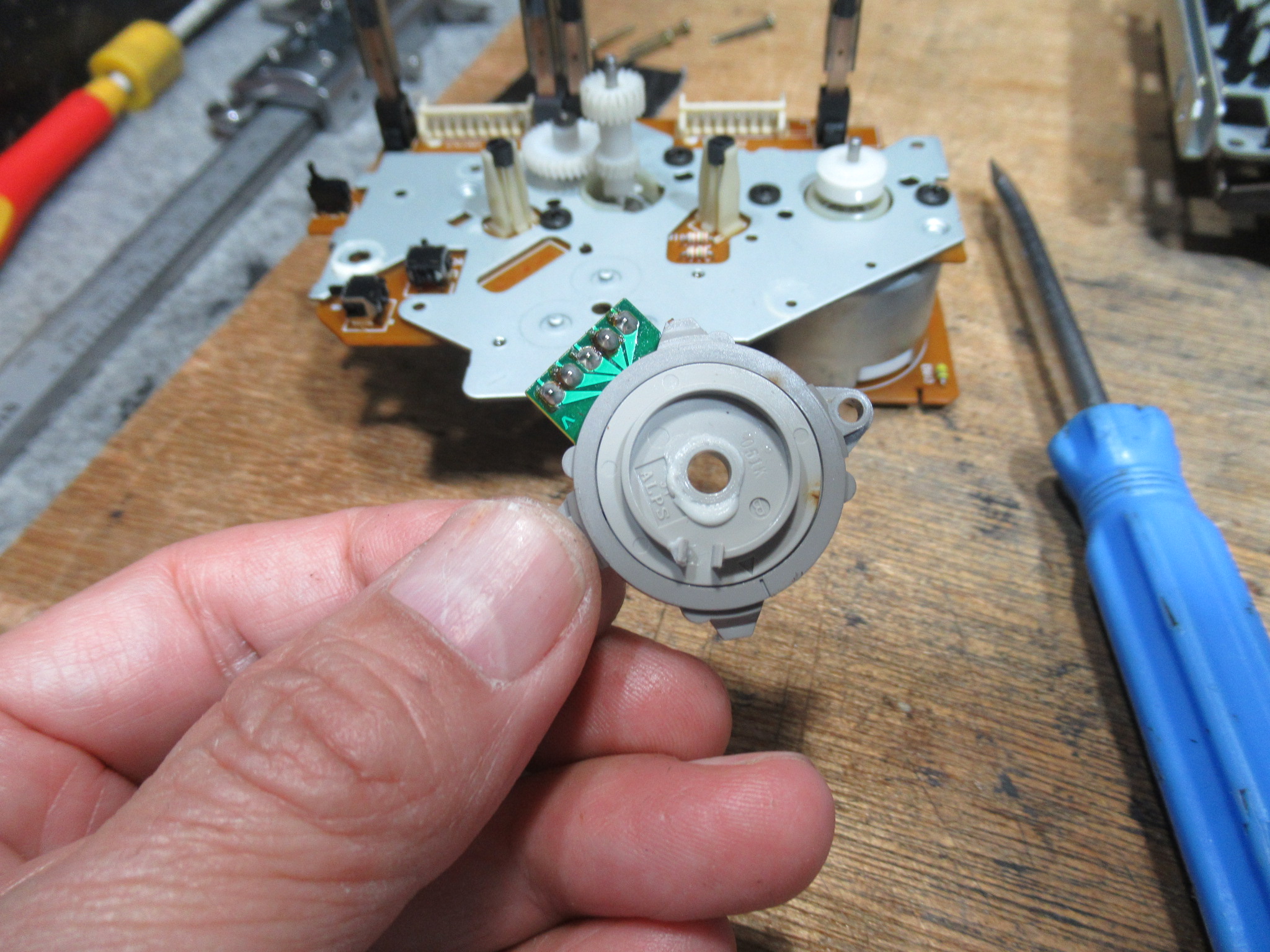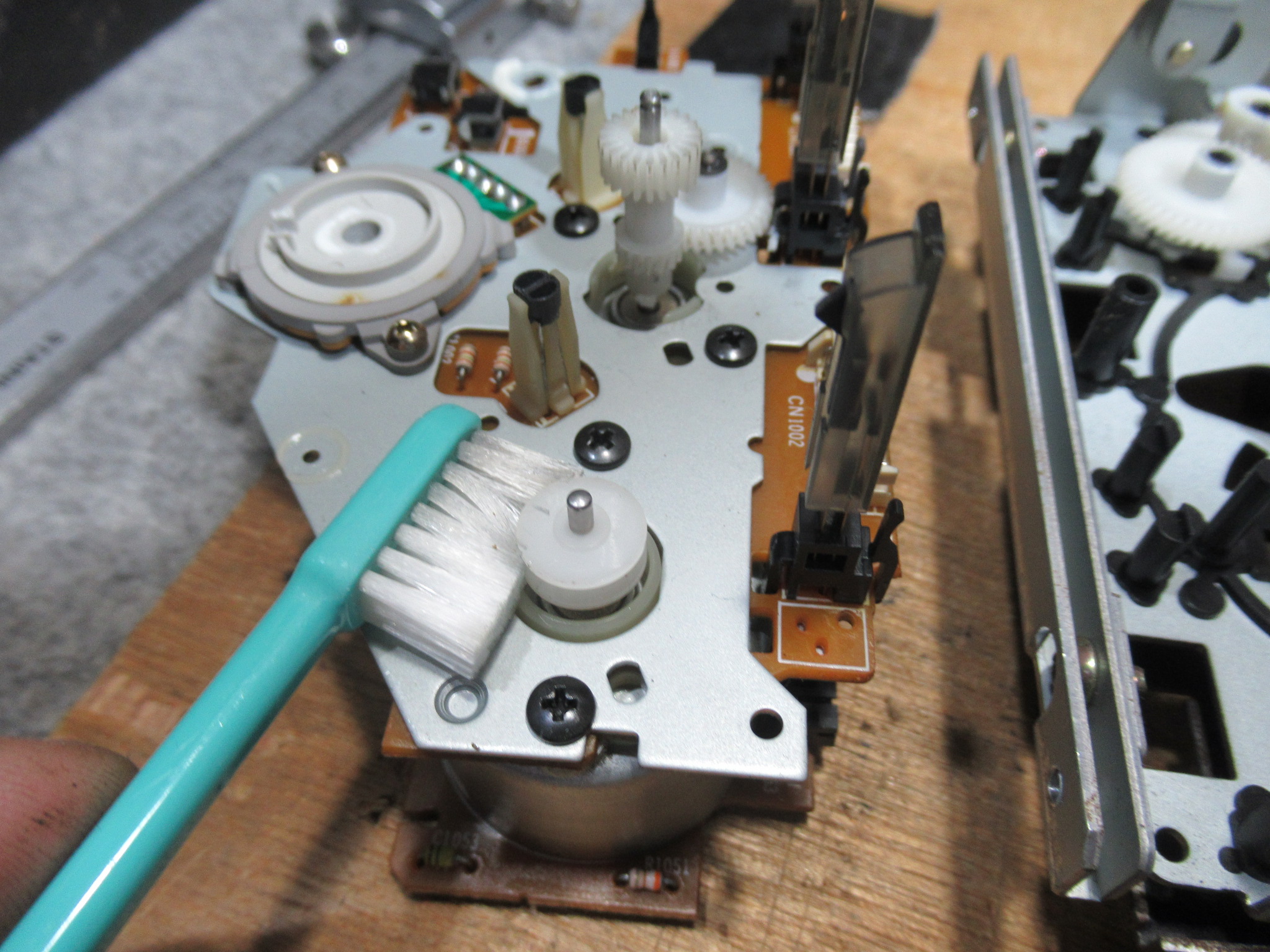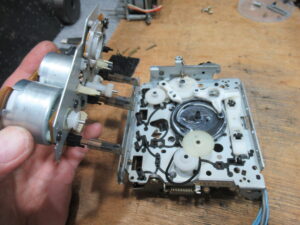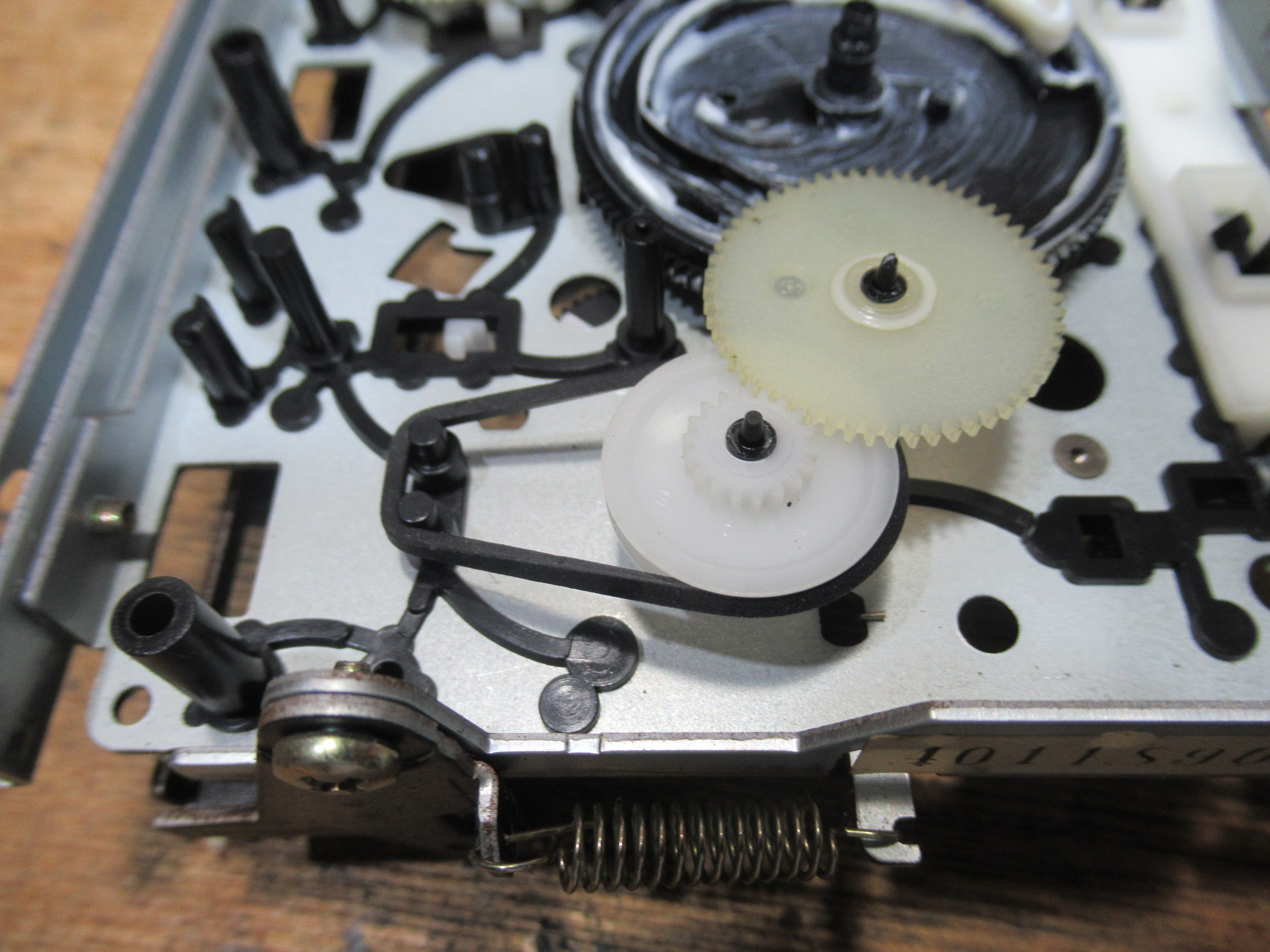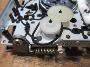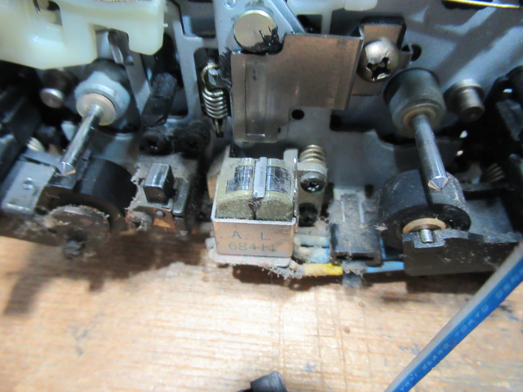 ヘッドが上がらないため再生ができませんが、早送り巻き戻しは正常です。