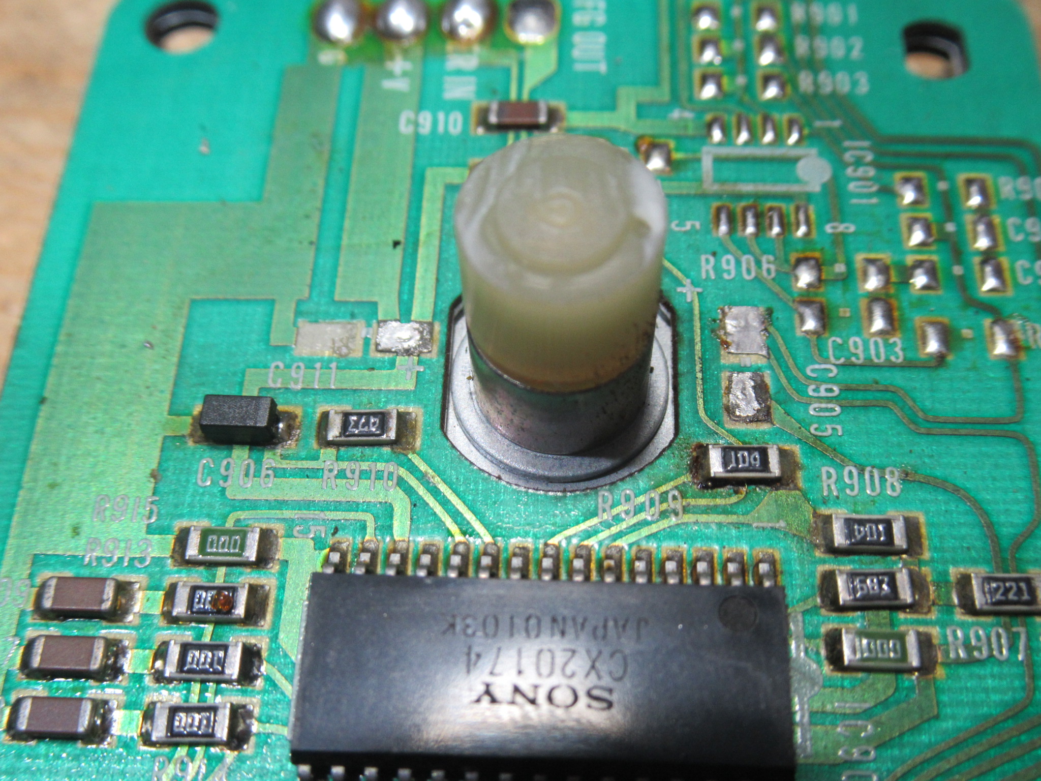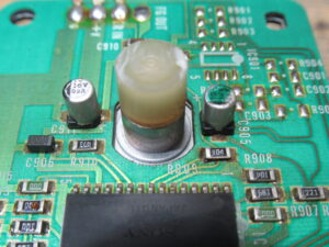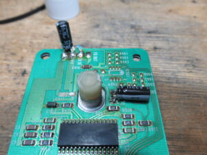 基板が傷んでいましたので、新しいコンデンサーの取り付け位置に工夫が必要です。