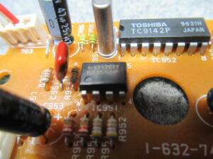 このIC自体が壊れやすいのか、モーター基板の電解コンデンサー液漏れによる高速回転が悪影響を与えたのかはわかりませんが、いずれにしても故障しやすいパーツのひとつのようですので、今後は注意が必要です。