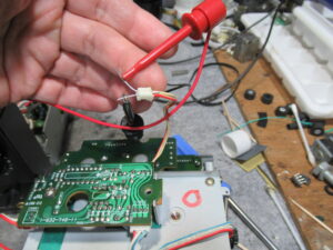 モーターユニットに電圧を印加します。無事不具合は解消されました。試しに、以前原因のわからなかった基板も捨てずに持っていましたので、同様の修理を行ったところ復活しました。