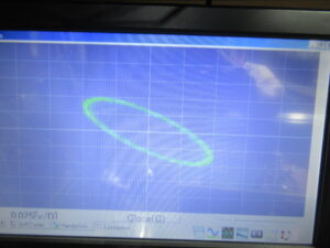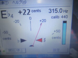 315Hzの信号が記録されたテープを再生し、速度の調整を行います。フォワード方向(左)とリバース方向で多少の差異がありますが、キャプスタンの摩耗等が原因ですのでやむを得ません。一般的なオートリバースデッキは、フォワードは右側、リバースは左側のキャプスタンでテープが送られますので、どちらかに摩耗が起こるとこういった状況になります。