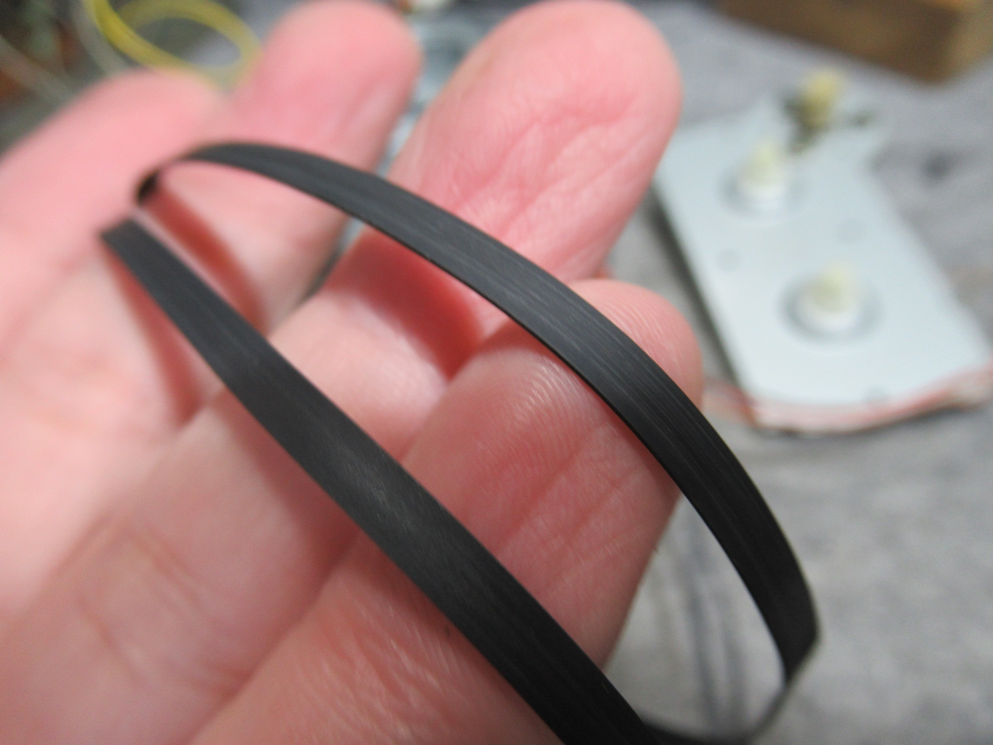 ビクターのデッキのベルトは、加水分解で溶けたりしませんが、表面がスベスベになってスリップが起こりますので交換します。