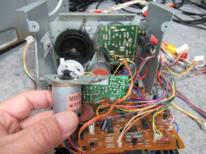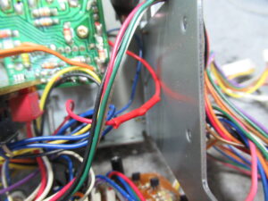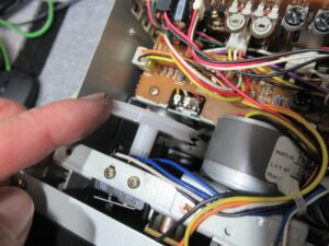 キャプスタンモーターは今まで見たものと異なりますので、他機種用と換装されているようです。そのためか、ケーブルが一度切断されて再接続されています。