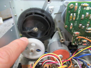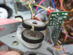 リールモーターユニットを取り出しました。アイドラーゴムが切れています。