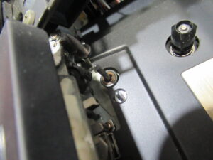 フロントパネルが上を向くように立てかけて、キャプスタンの根元に注油します。