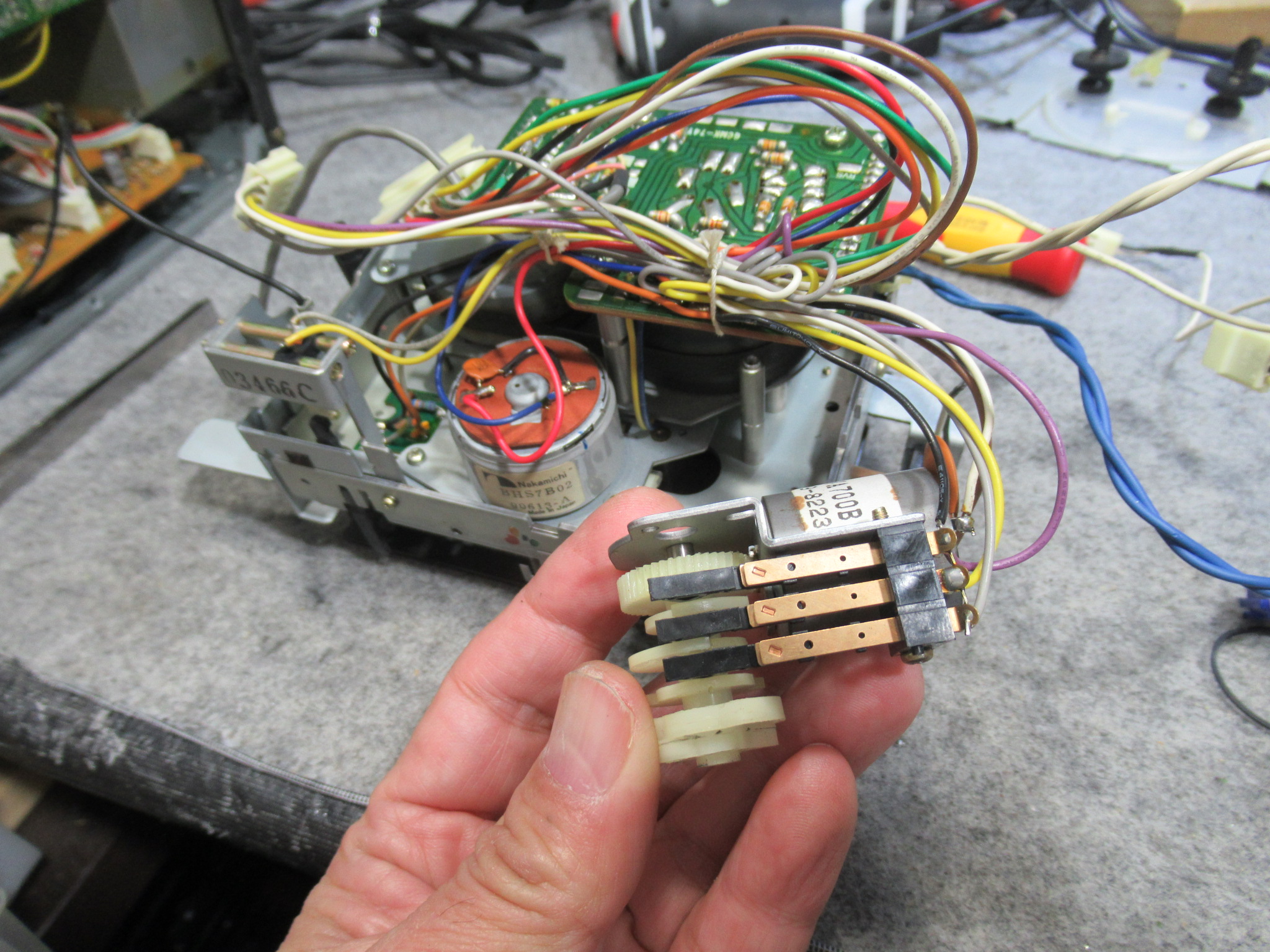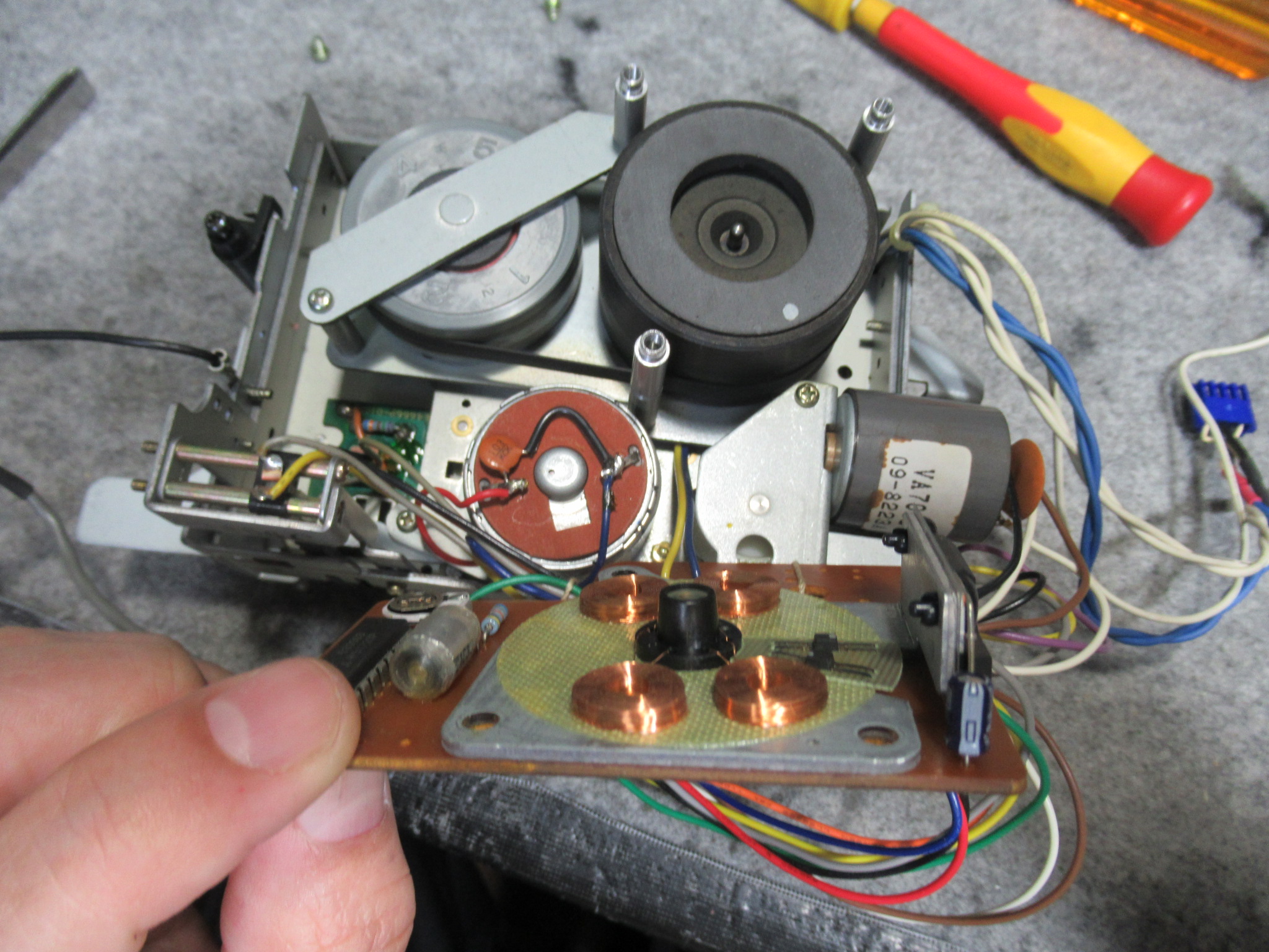 キャプスタンモーター基板とフライホイールを取り外します。