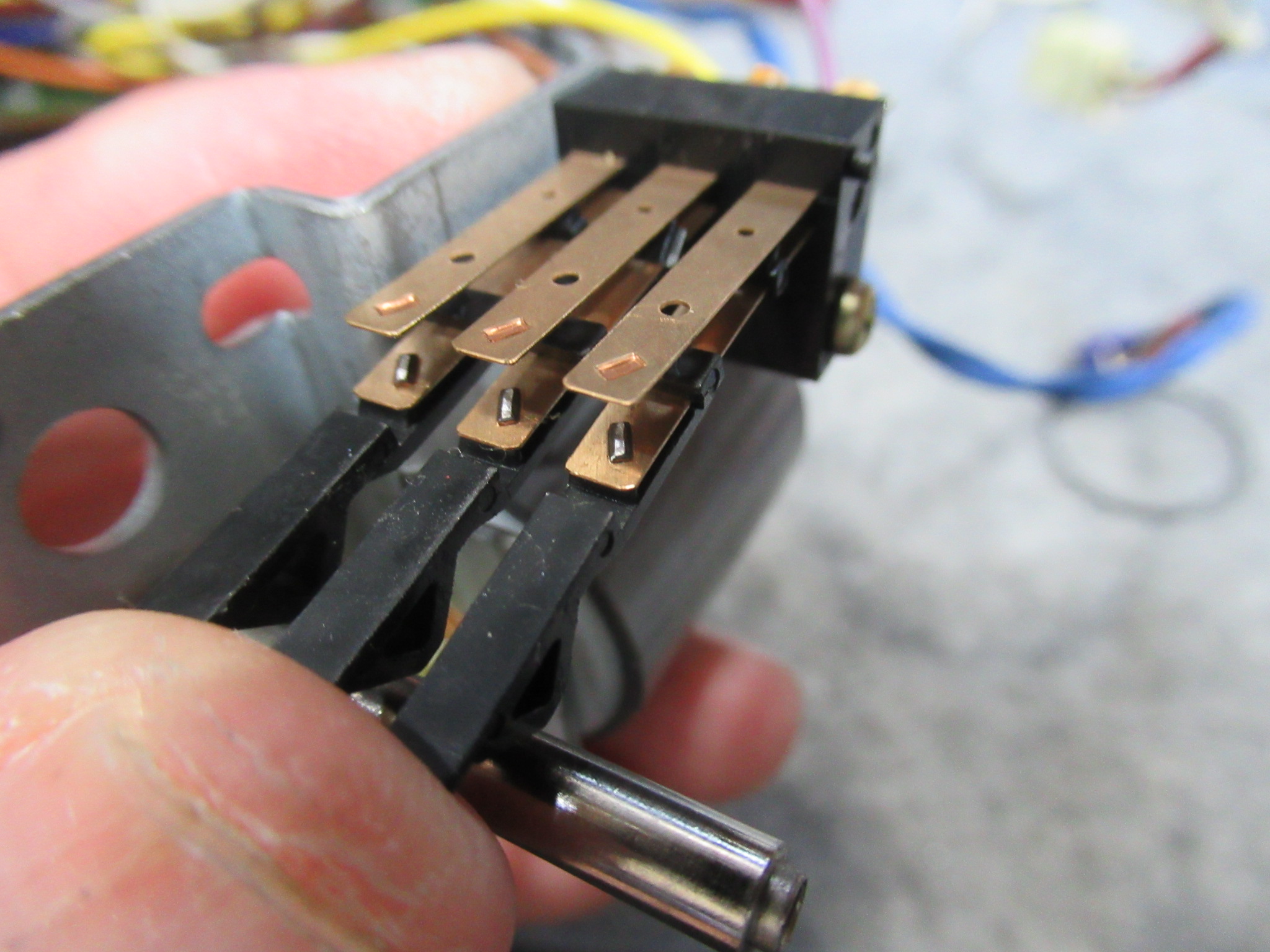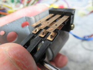 酸化して黒ずんでいる接点を磨きます。