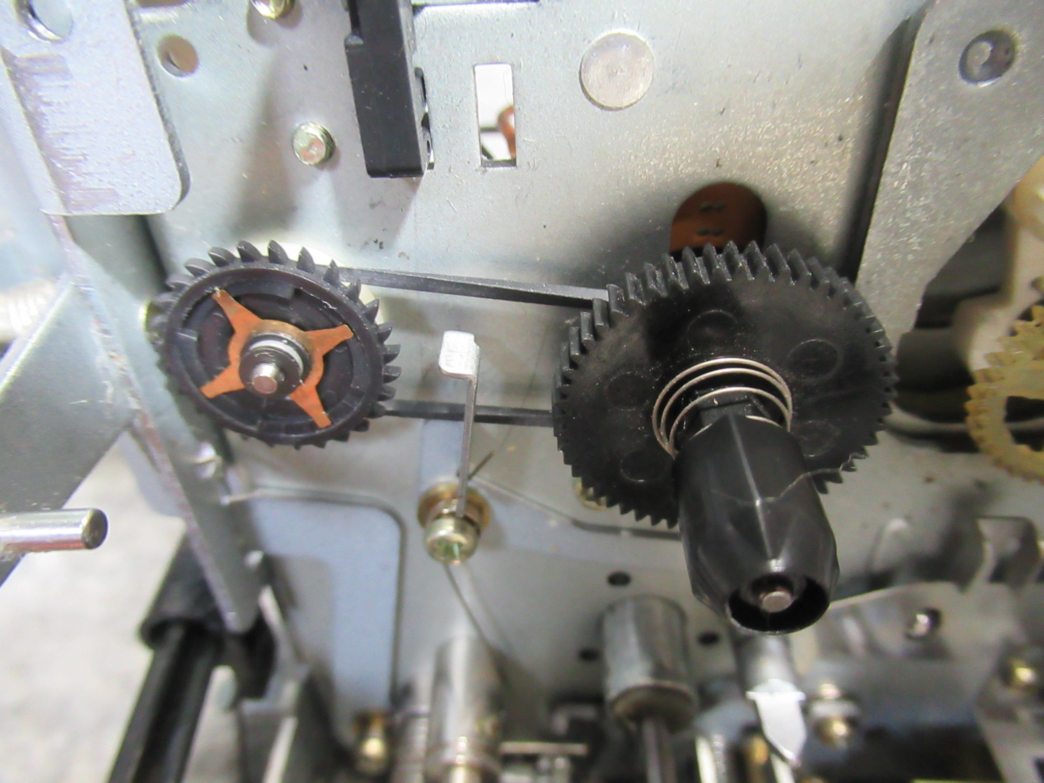 フライホイール(キャプスタン)が回転していません。指でアシストすると、回りそうになりますが、重くて回転しません。