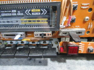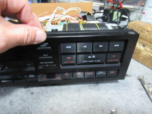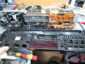 フロントパネルを取り外しました。照明のランプについては、配線が切断されていました。スペアはありませんので、これは対処できません。