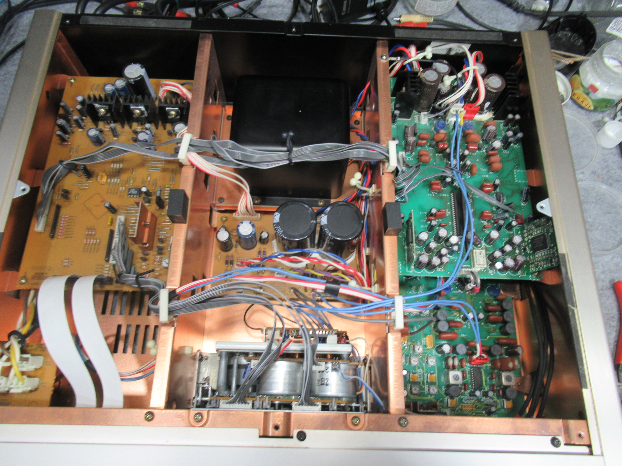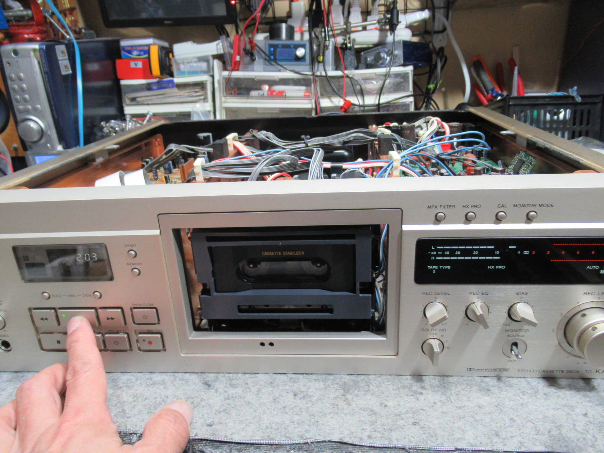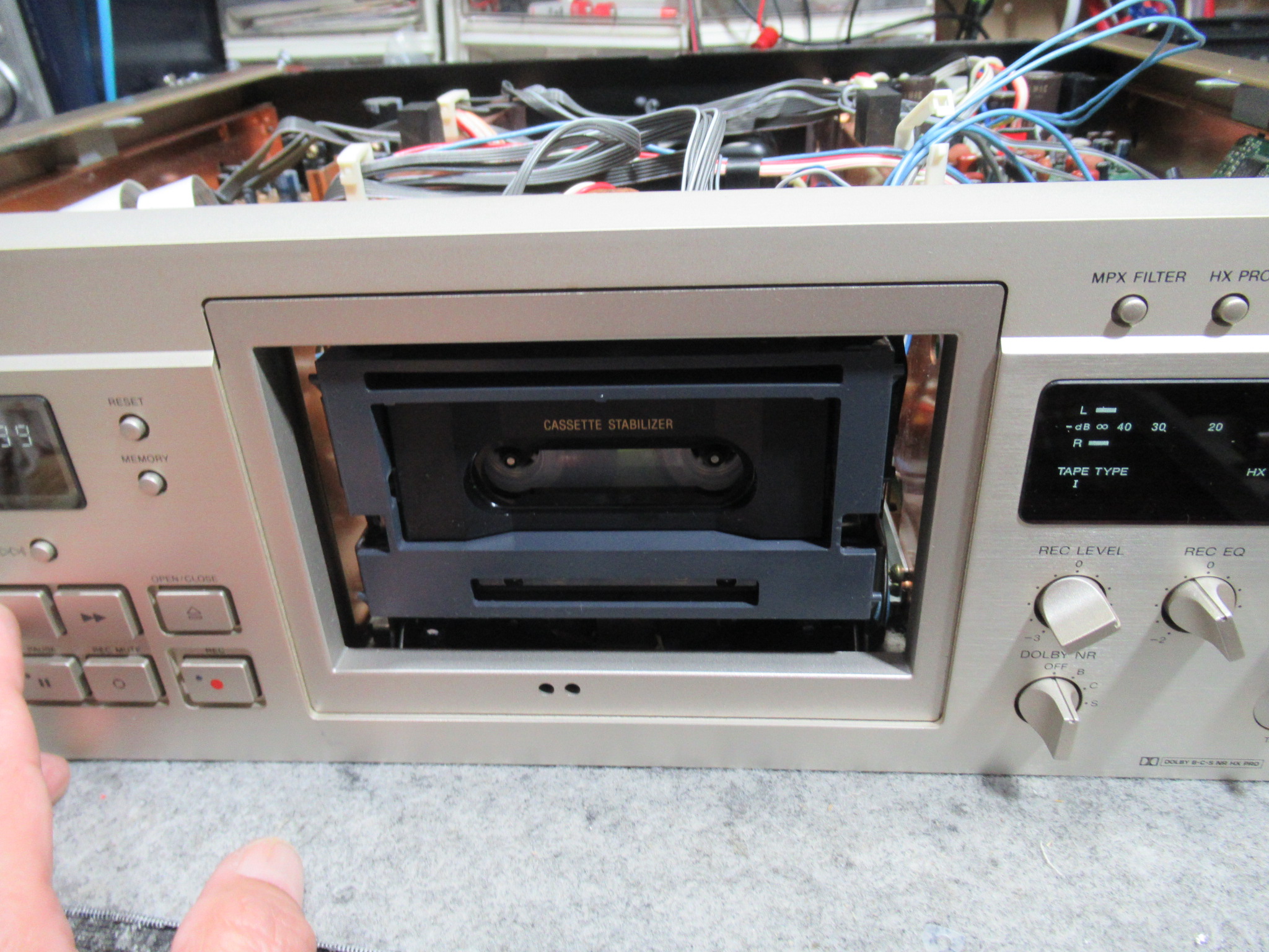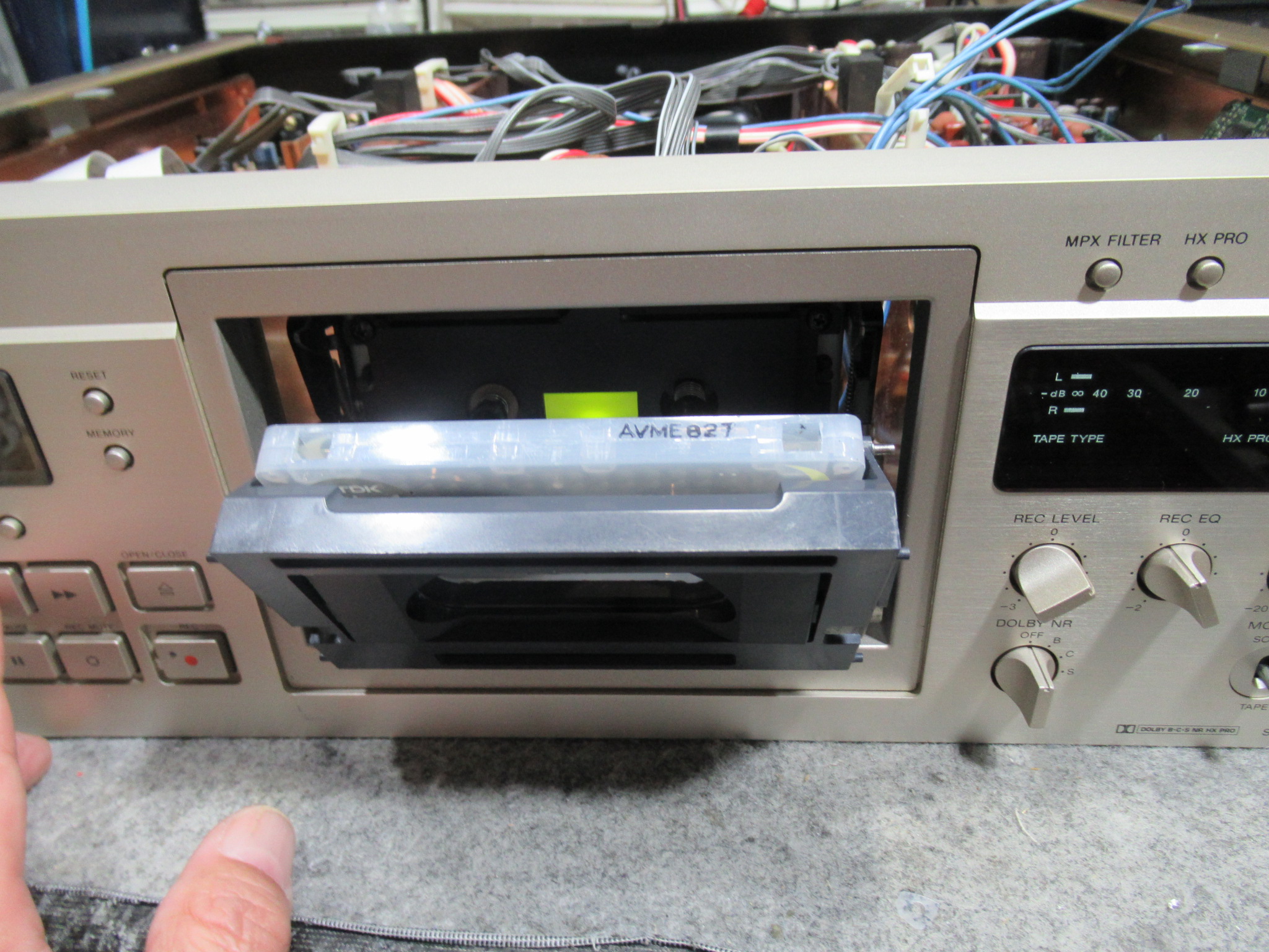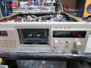 SONY製3ヘッドデュアルキャプスタンカセットデッキ、TC-KA7ESの修理依頼をいただきました。 希少なブラックモデルです。 ヘッドが上がらないため再生NGです。 また、ドルビーを切り替えると表示が …