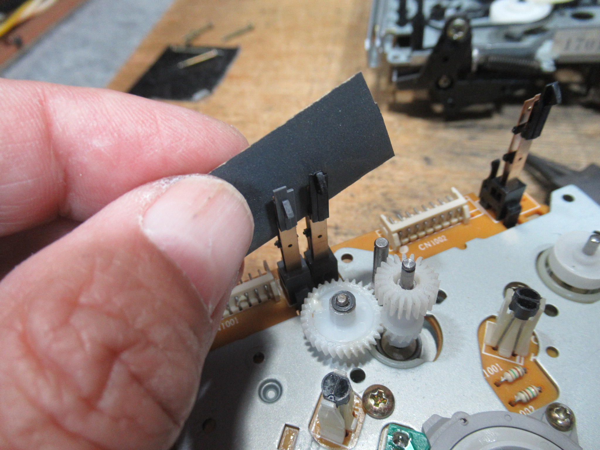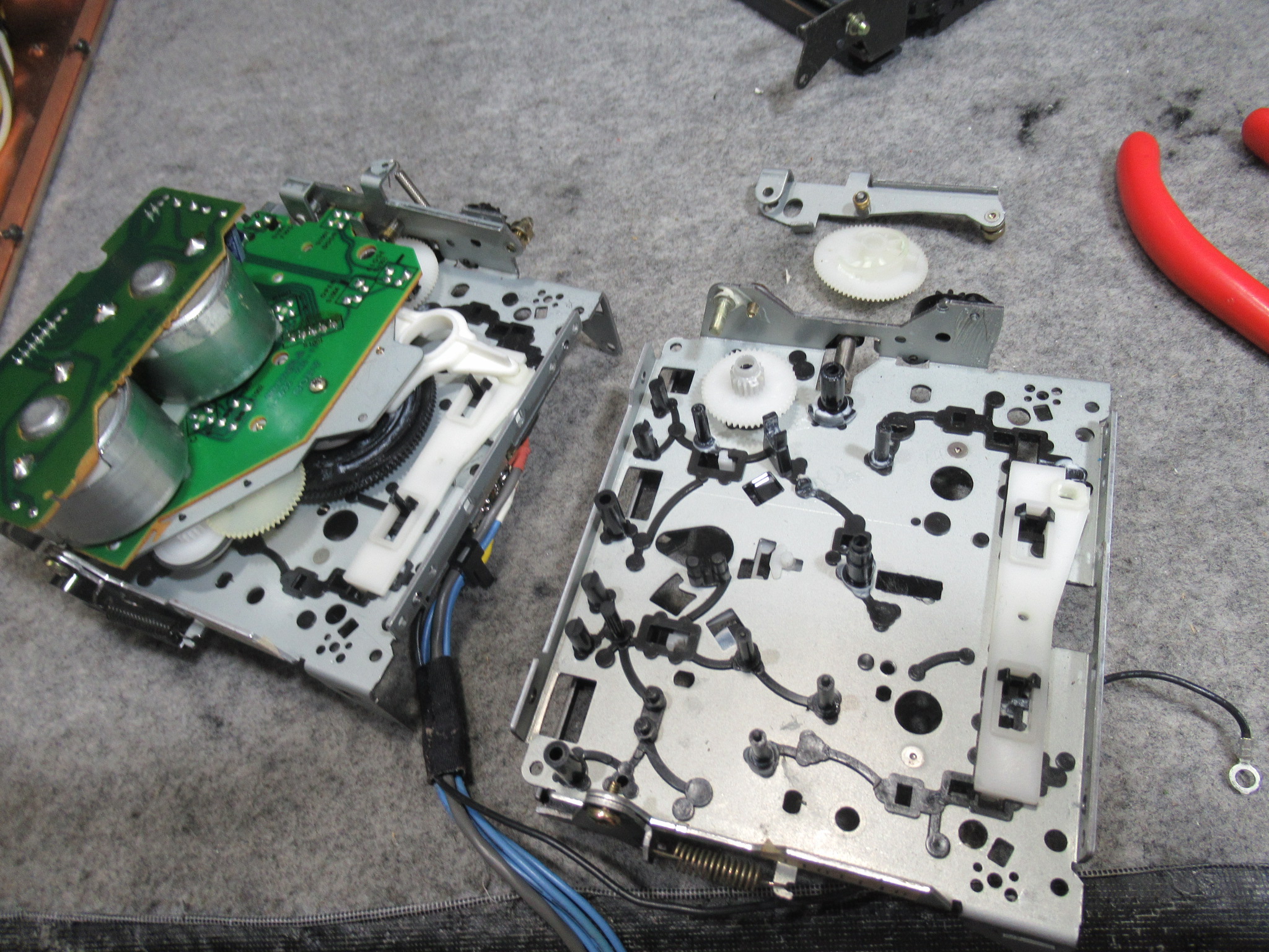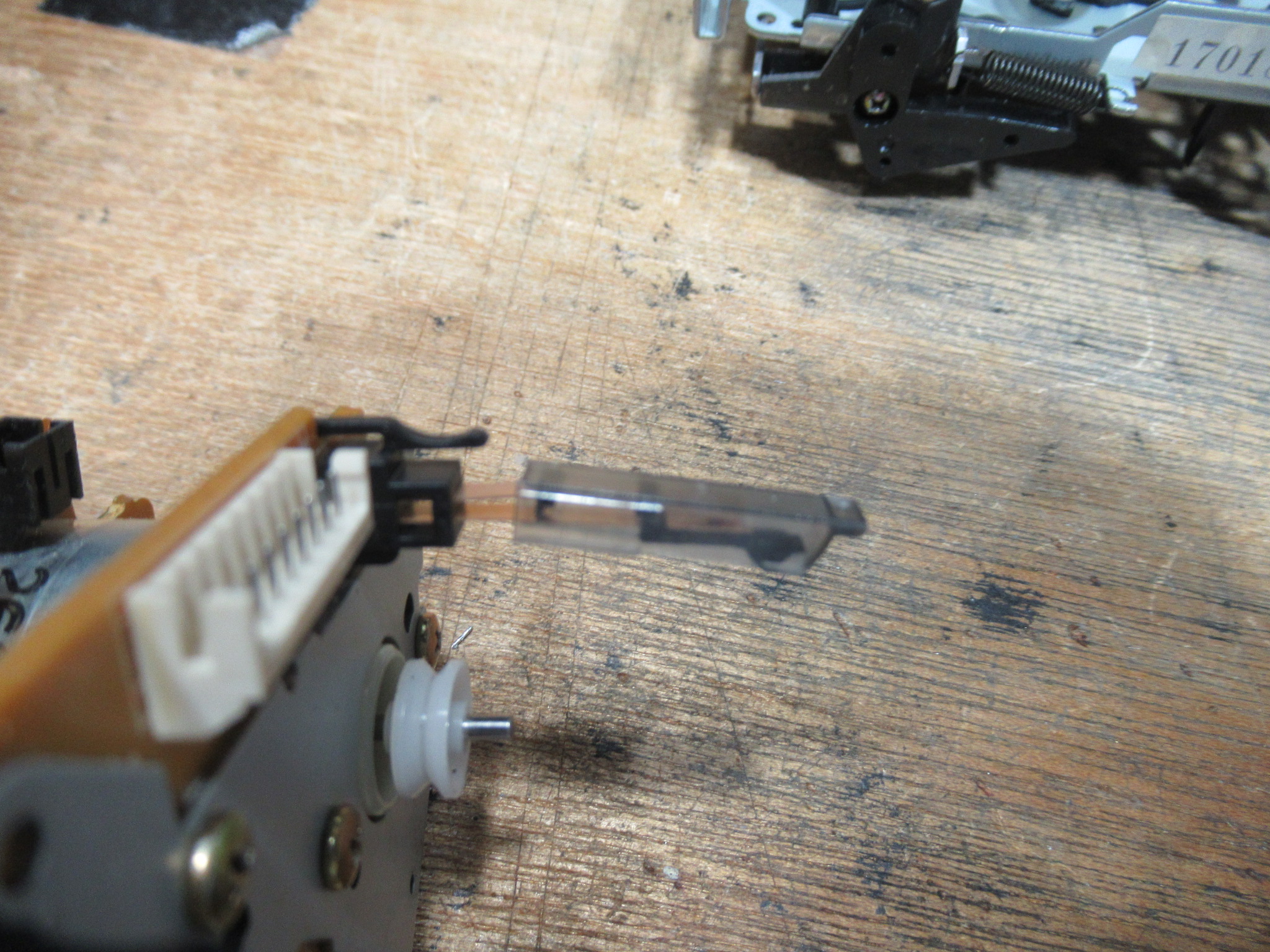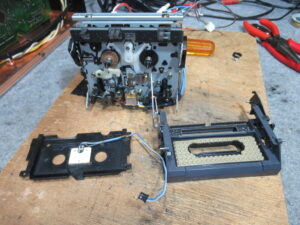 メカを元通り組み付けて動作確認、というところで、新たな不具合が見つかりました。トレイが上手く閉まらずに開いてしまうことが多々あります。