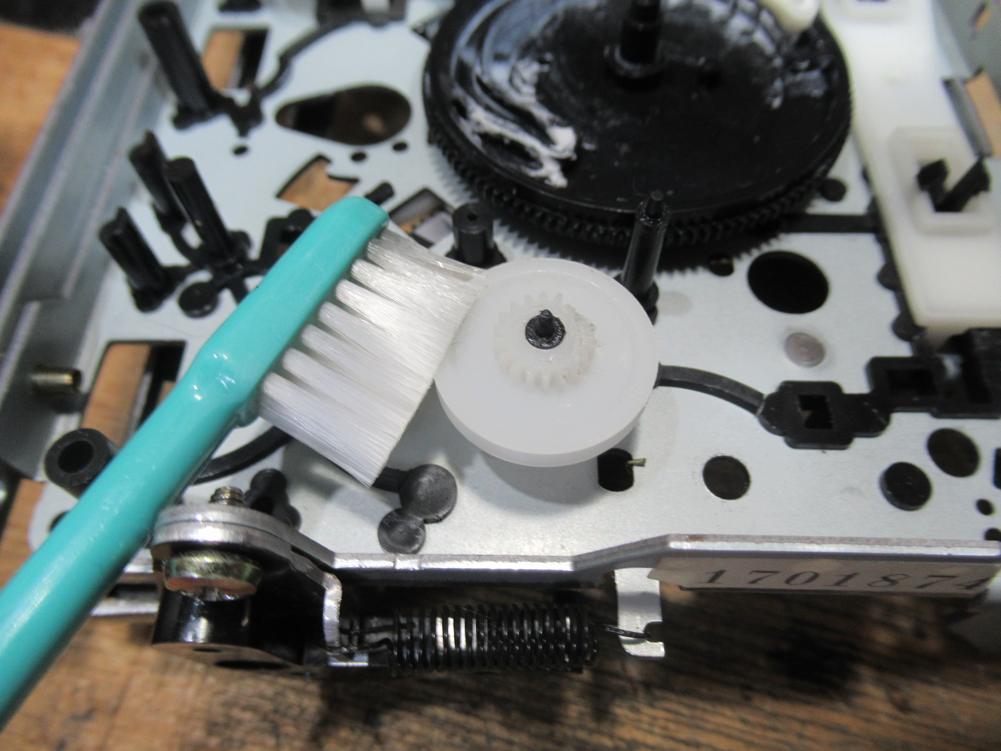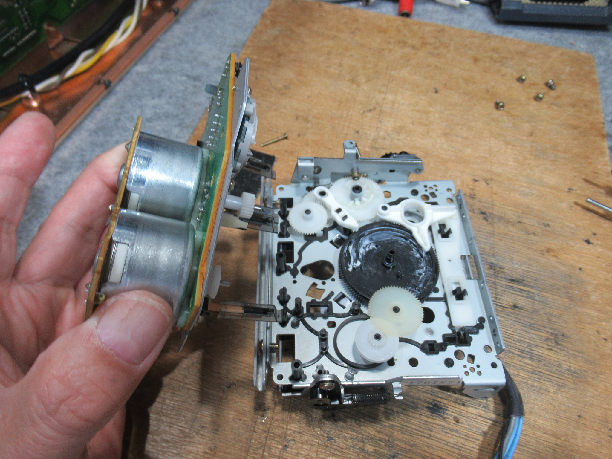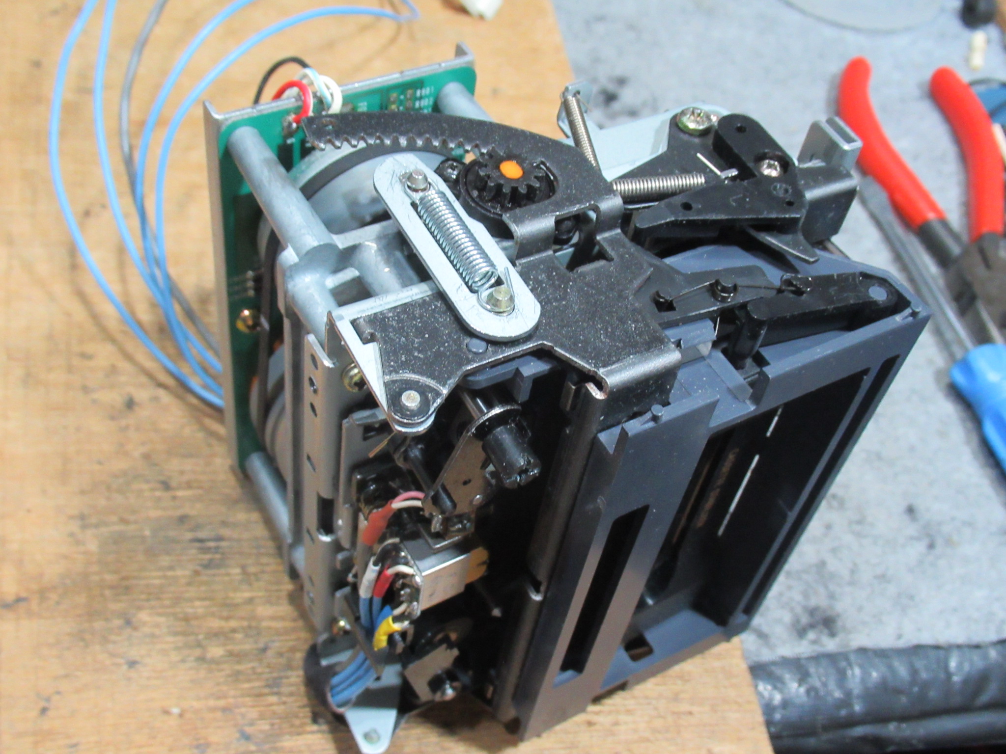 メカを元通り組み付けて動作確認、というところで、新たな不具合が見つかりました。トレイが上手く閉まらずに開いてしまうことが多々あります。