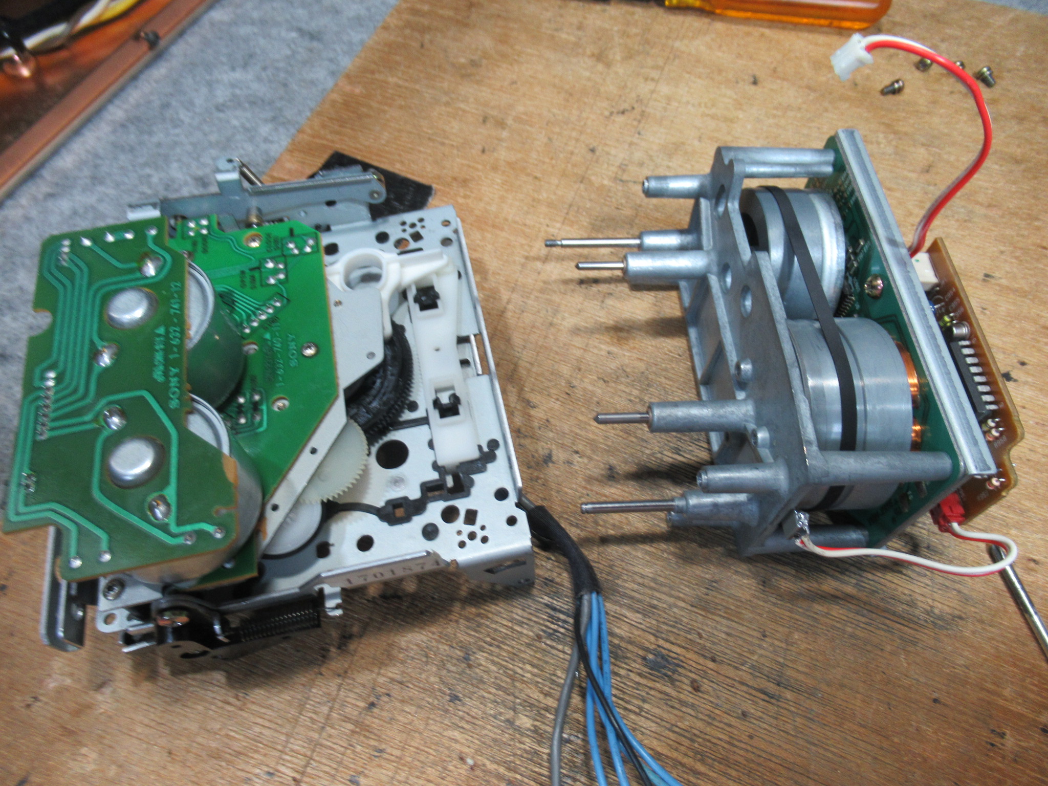 3本とも接続し直しました。一旦組み付けて、キャプスタンが回転することを確認しました。