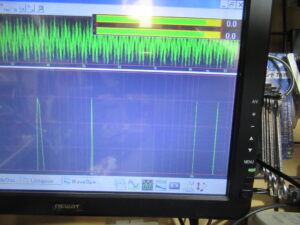 周波数特性を点検します。315Hz、1000Hz、10000Hz、16000Hzの信号を録音します。左写真は音源、右はそれを録音再生モニターしたものです。まったく問題はありません。これも巻き取りトルクが影響していた可能性があります。