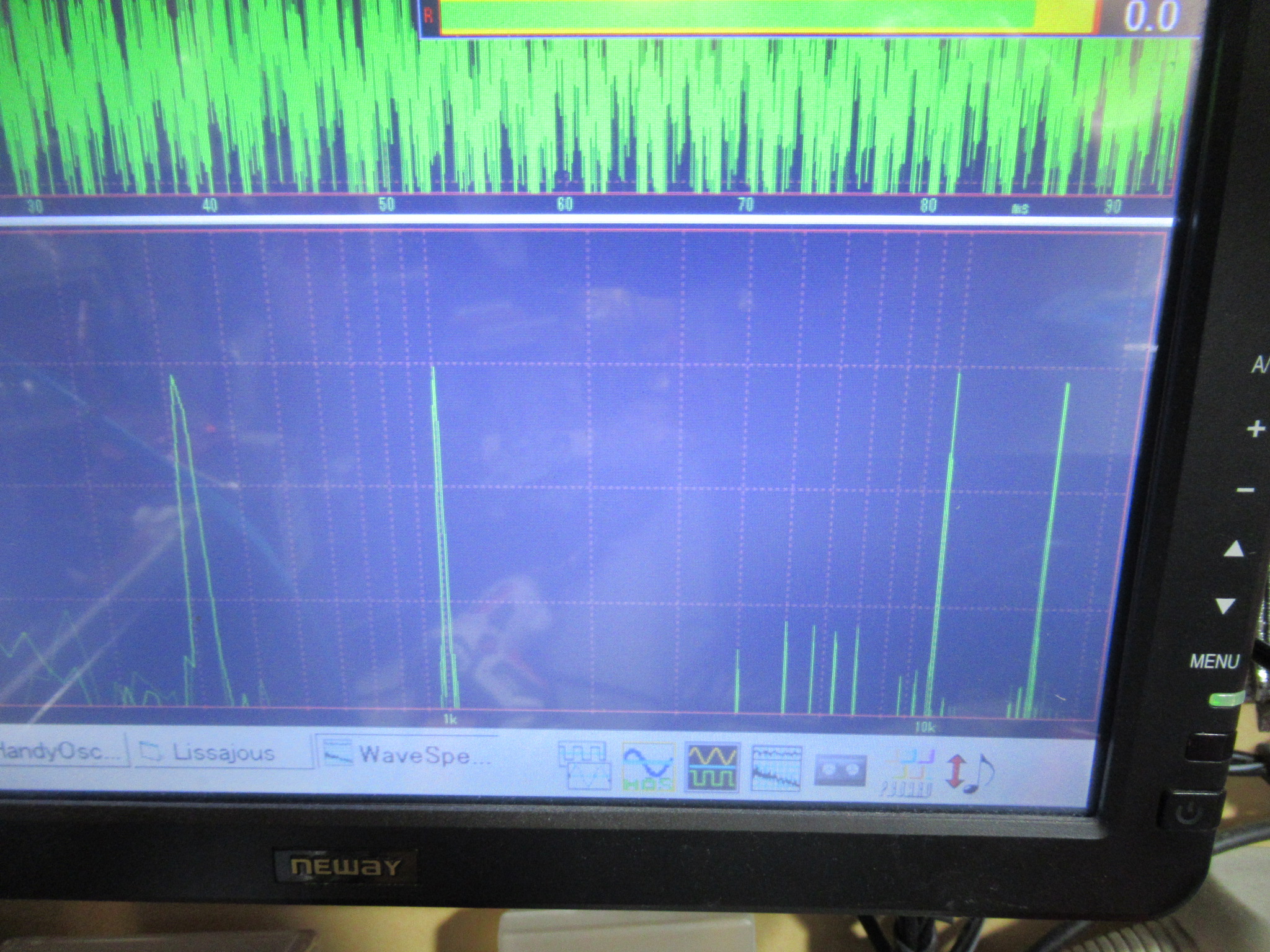 周波数特性を点検します。315Hz、1000Hz、10000Hz、16000Hzの信号を録音します。左写真は音源、右はそれを録音再生モニターしたものです。まったく問題はありません。これも巻き取りトルクが影響していた可能性があります。