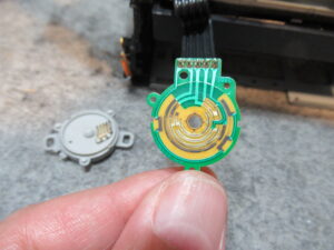 指先のカートリッジ検出スイッチに接点復活剤を処置します。