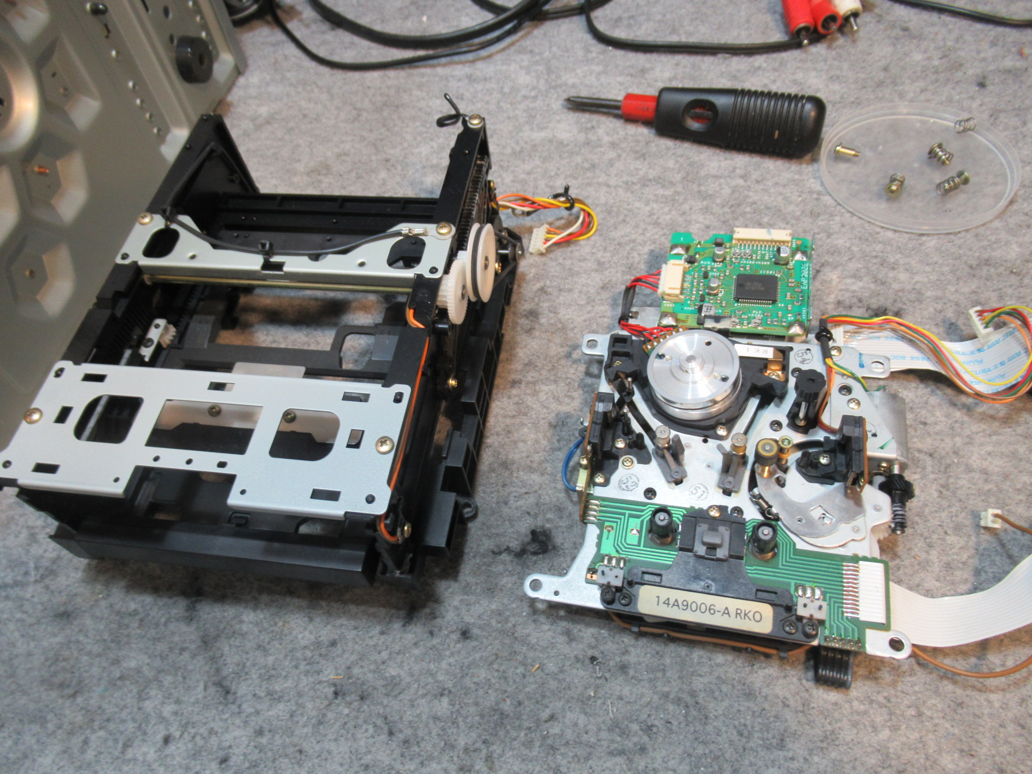 この機種は、パイオニアのD-05のOEMですが、細部は異なります。不具合の状況としては、テープが再生されずに「ERR」表示になるということです。ローディングされている気配もないとのことです。