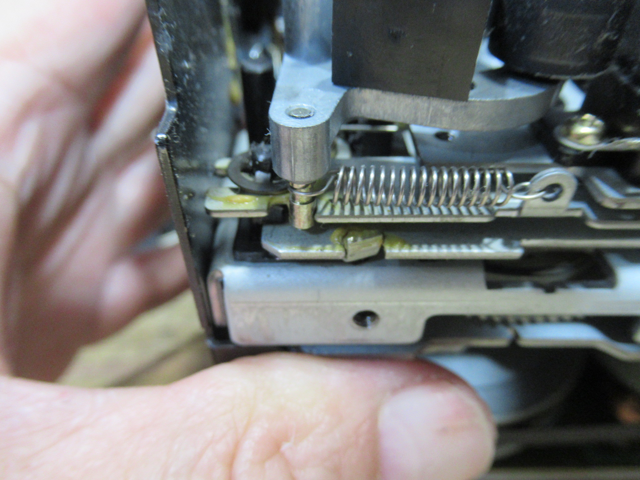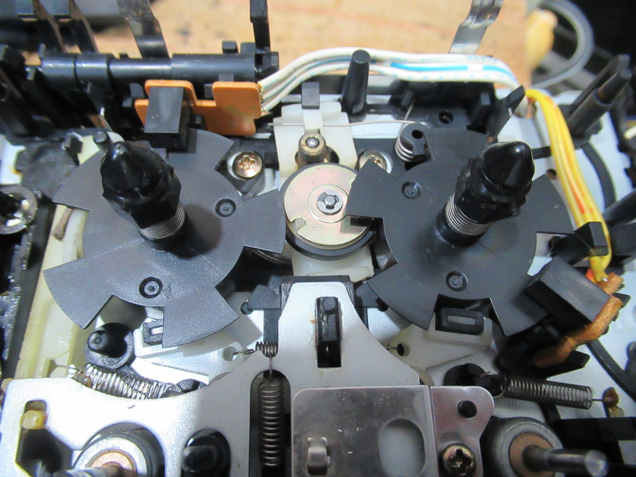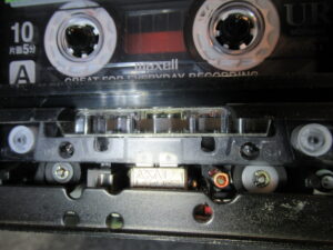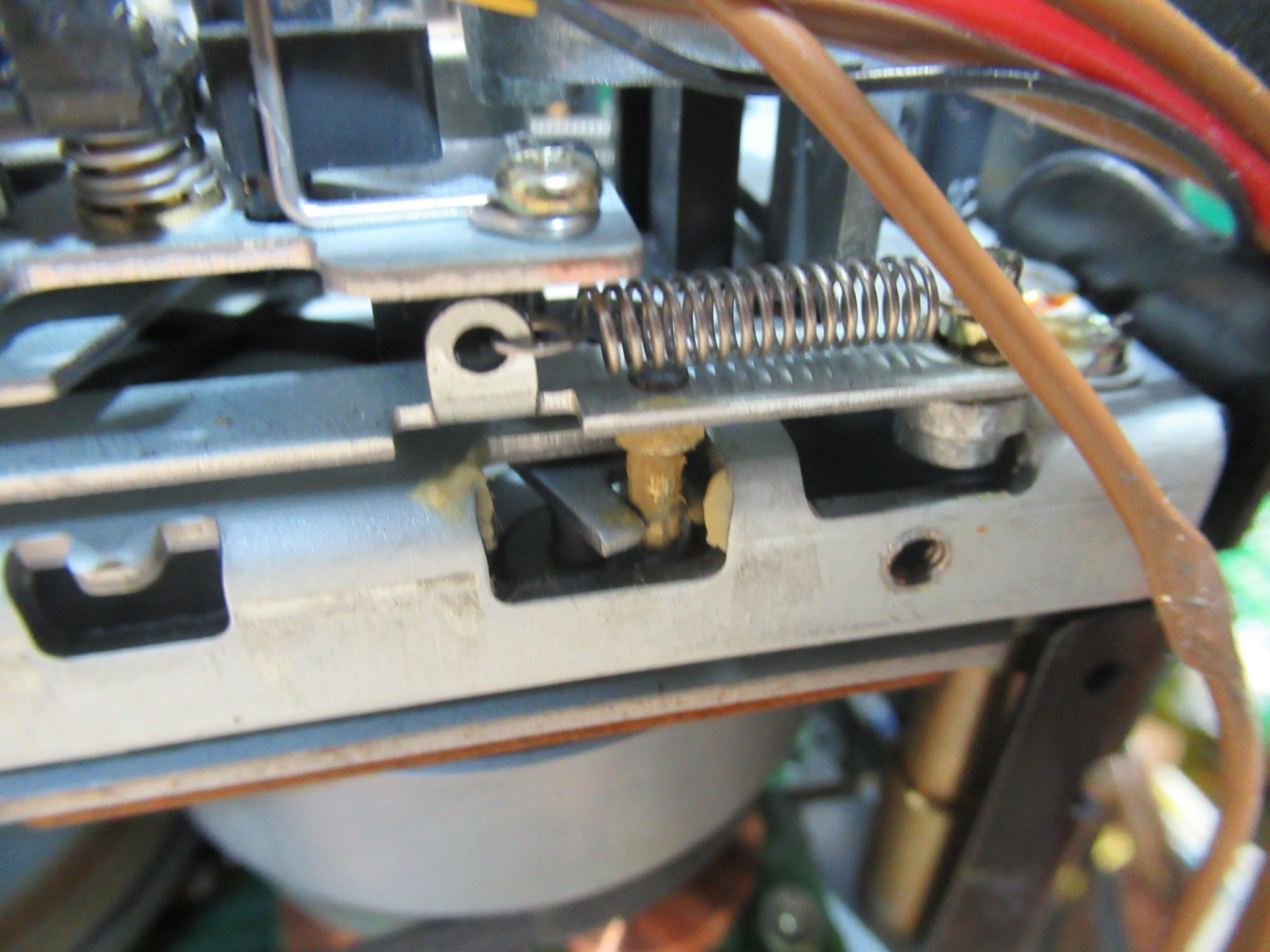 ホルダーの両脇には、カセットを押さえ付ける樹脂製のバネが内蔵されていますが、長年の使用によりヘタっています。