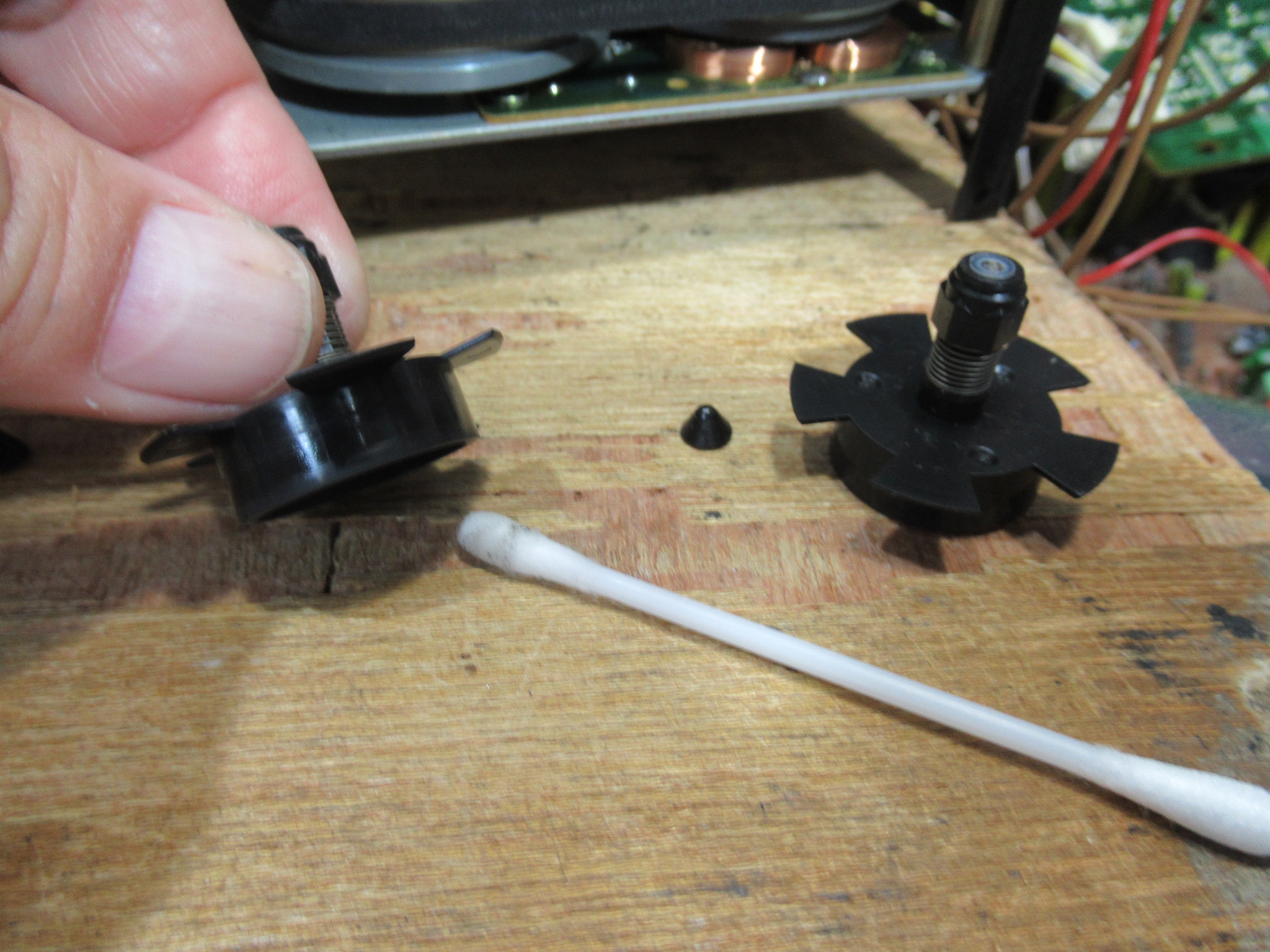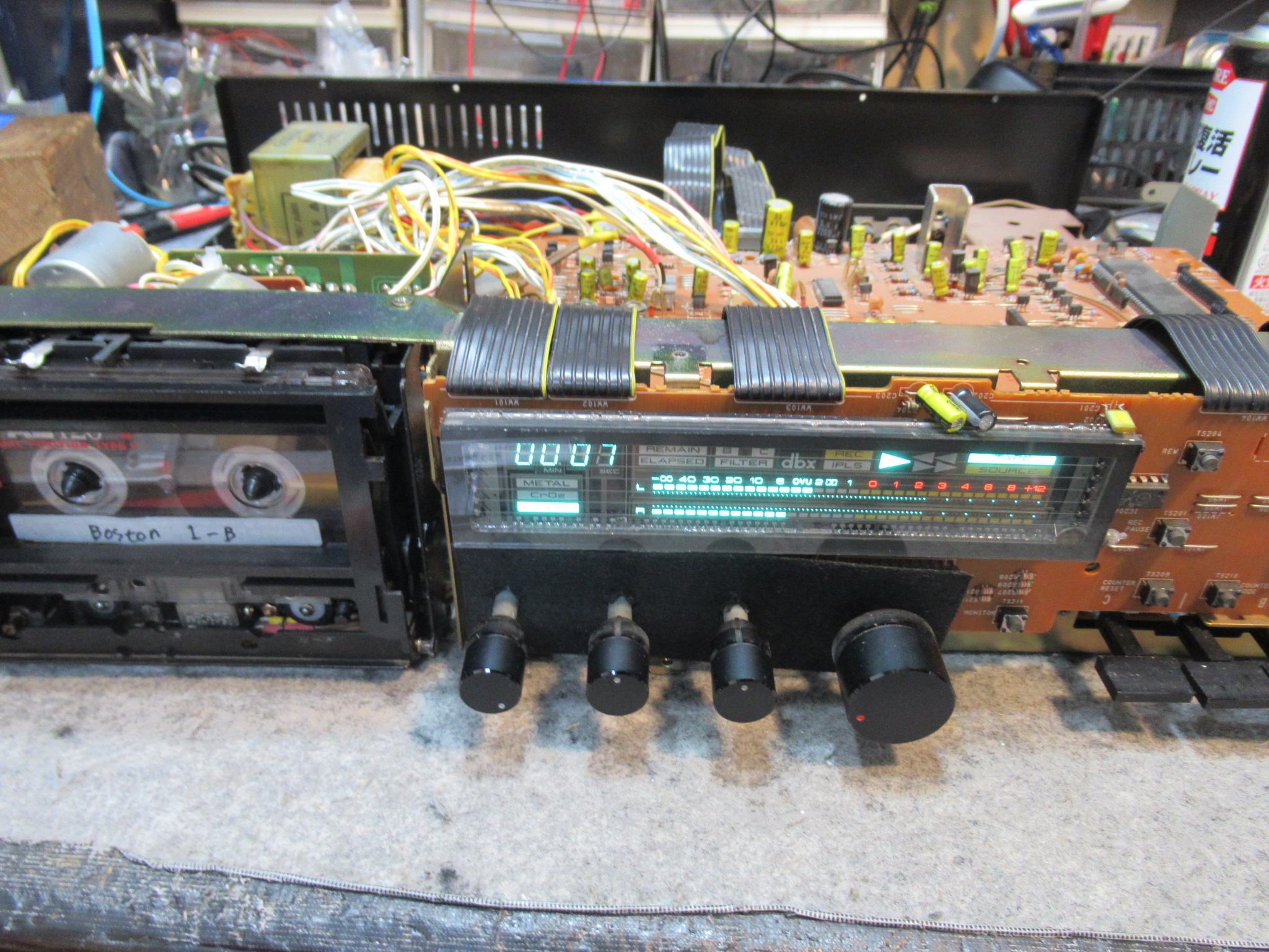 ここでひとつ問題があることがわかりました。RECバランスツマミ半反時計回りに回すと、途中で接触不良が起きてメーターが大きく振れることがあります。接点復活剤をVOLに処置することによりかなりの改善が見られましたが、100%ではありません。交換の是非についてオーナー様にご相談したところ、録音はしないということでしたので現状のまま進めます。