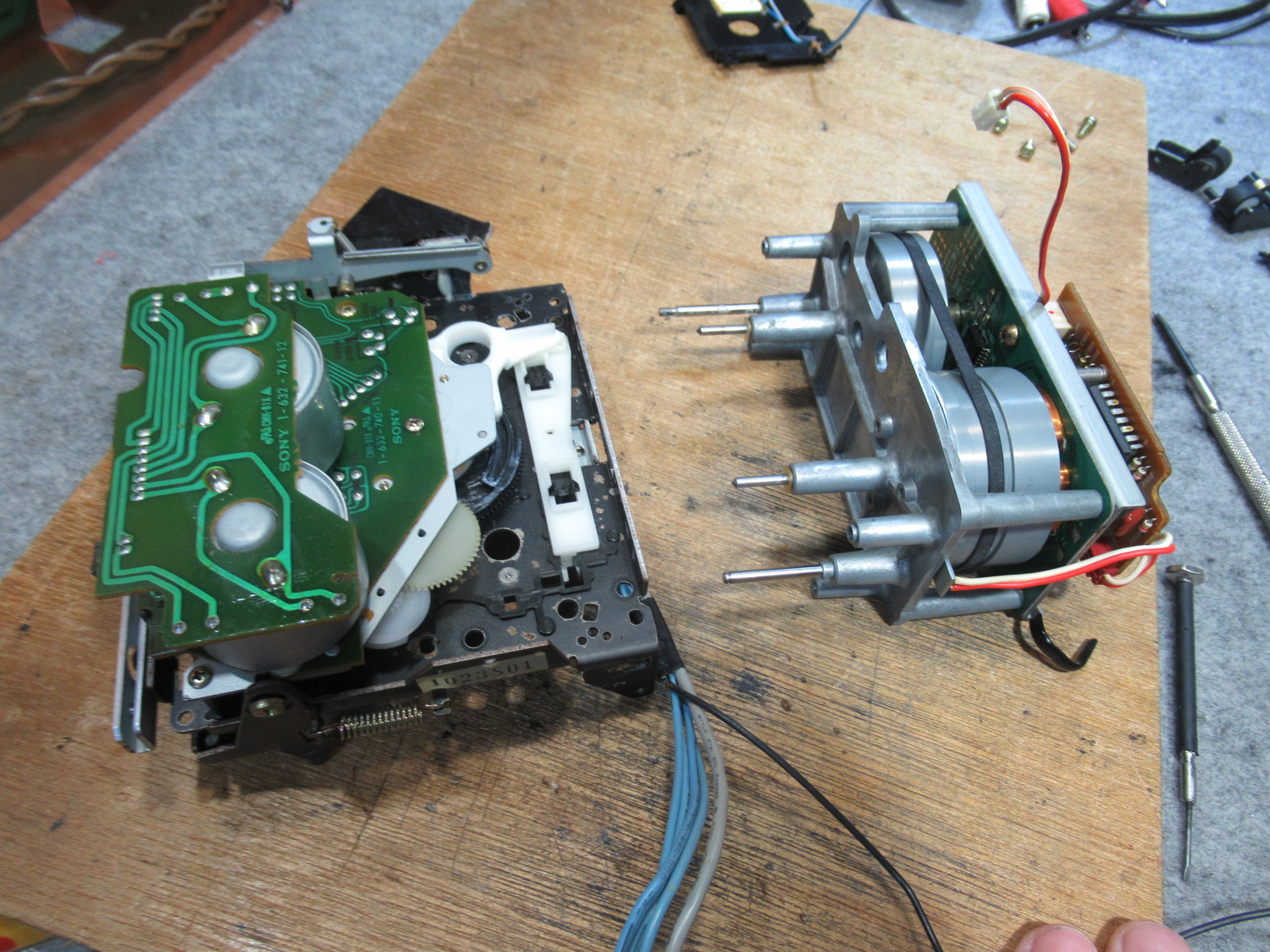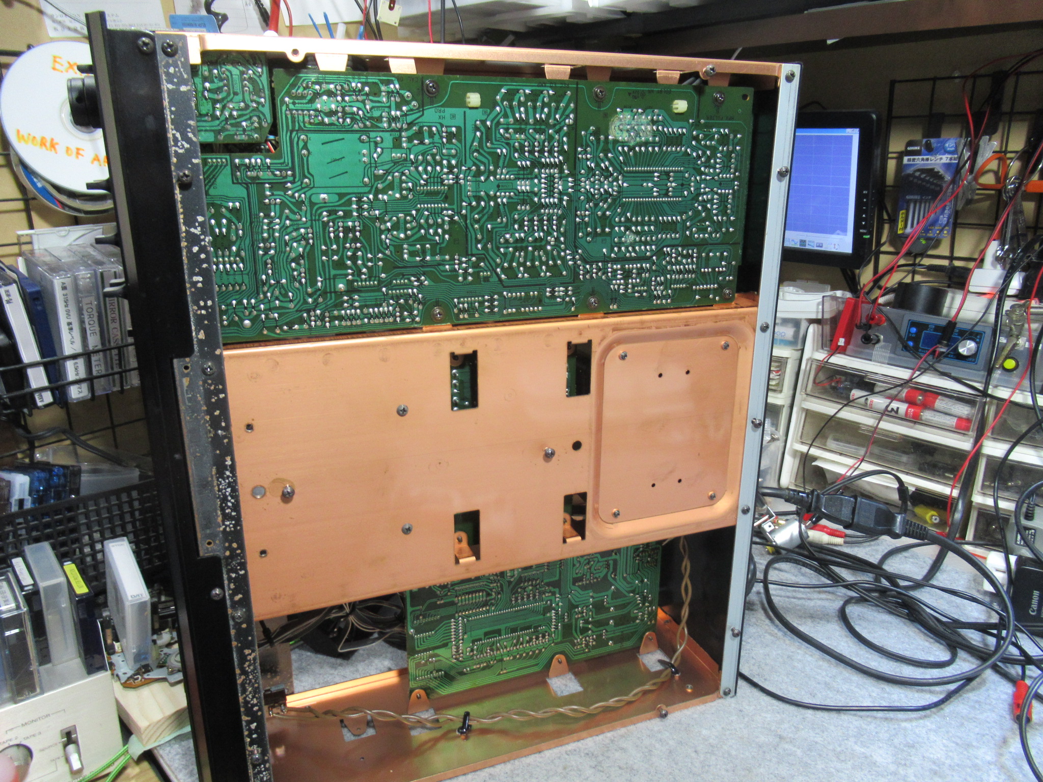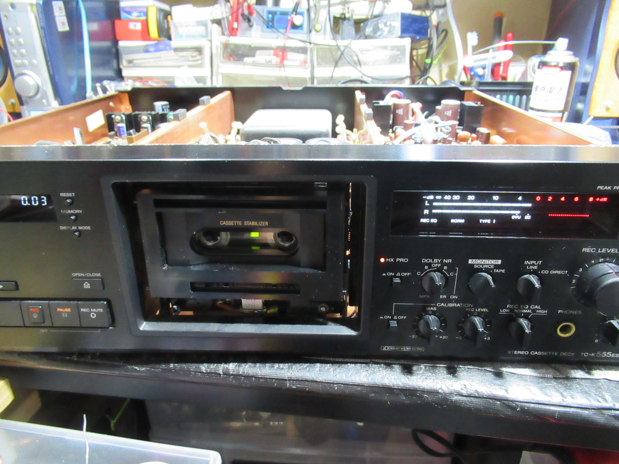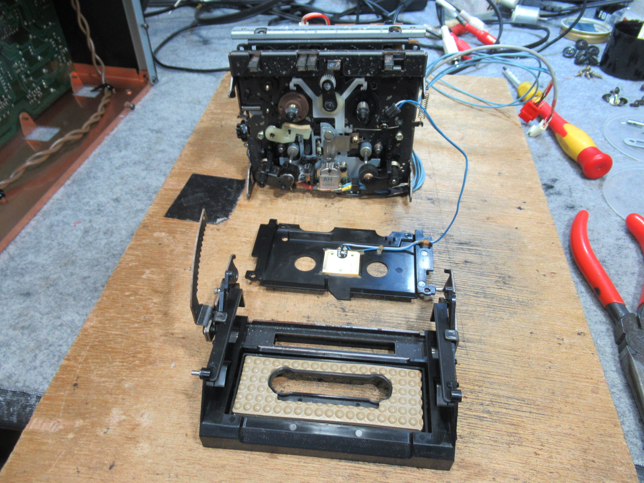メカを本体に組み付け、ここで一旦、再生と録音が正常なことを確認します。