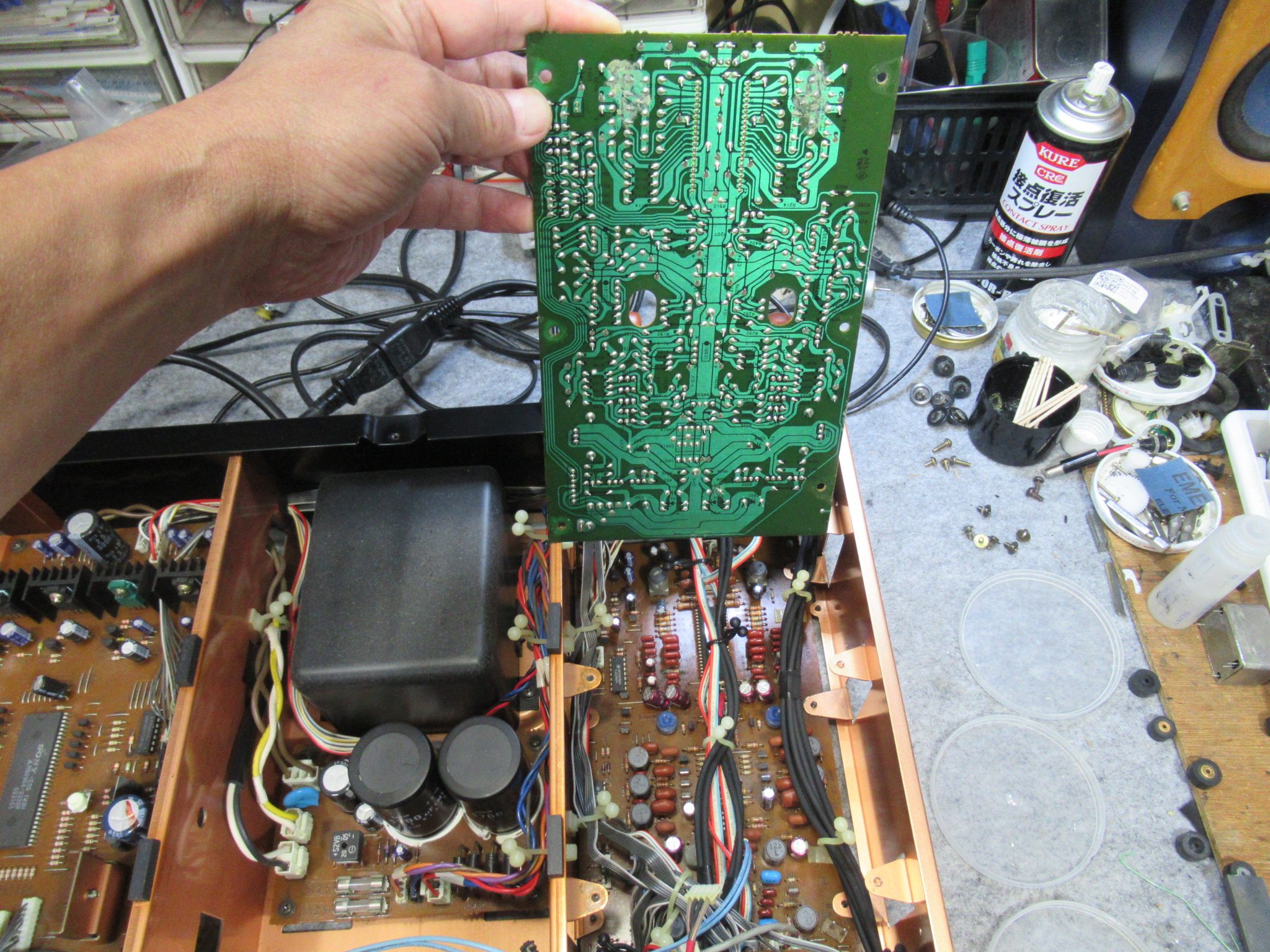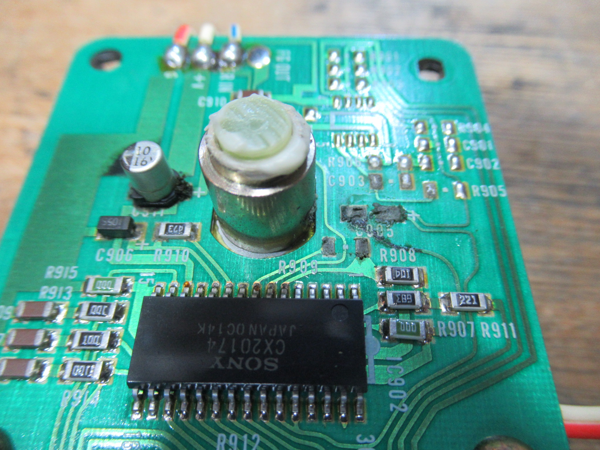 ヘッドホン基板です。表面には出ていませんが、これまでの経験上、間違いなく液漏れしていると思われます。