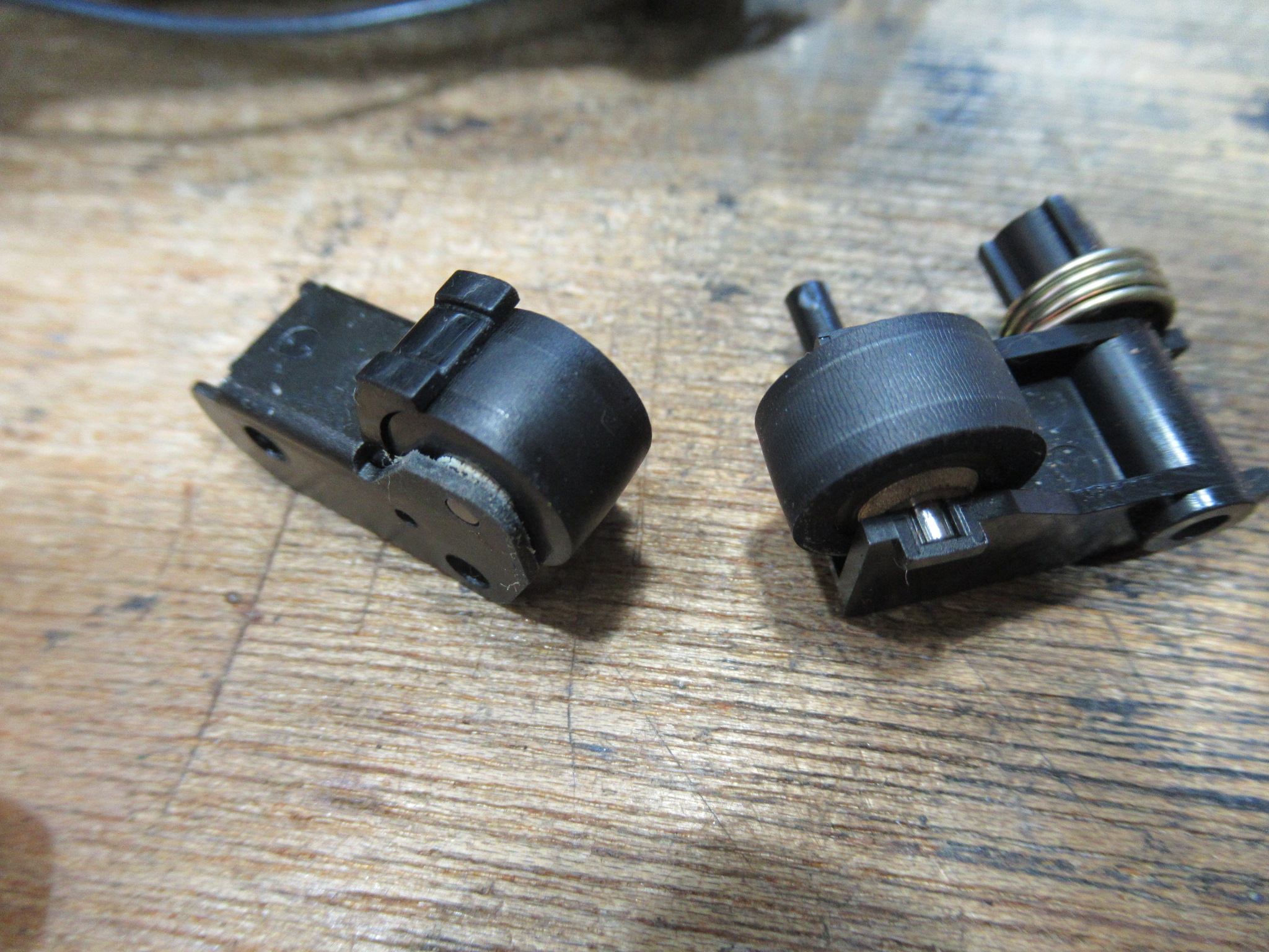 目視点検します。ピンチローラーが劣化しています。
