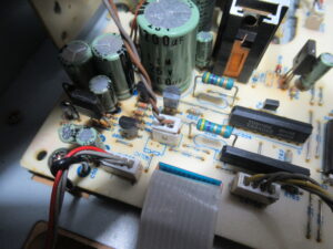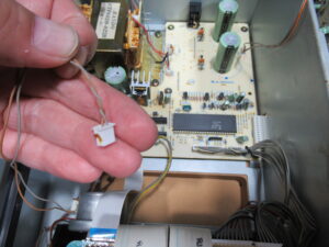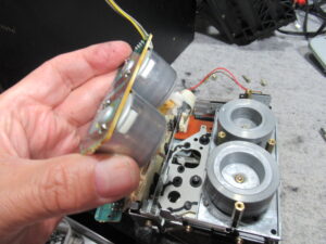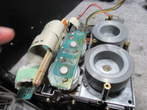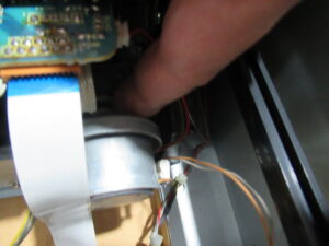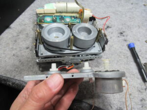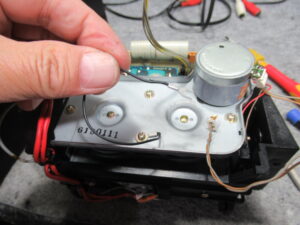 キャプスタンモーターのコネクタが抜けていました。これでは再生はできませんので、元通り差し込みます。