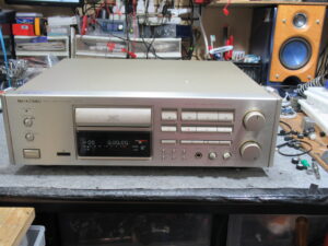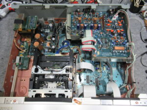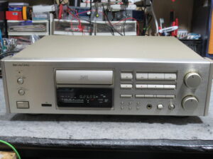 PIONEER製DATデッキ、D-07です。 4年ほど前に一度、当店で修理しています。今回の故障は2点です。 電源ONの状態ですが、ディスプレイがほぼ点灯しません。電源の故障が疑われます。 イジェクト …