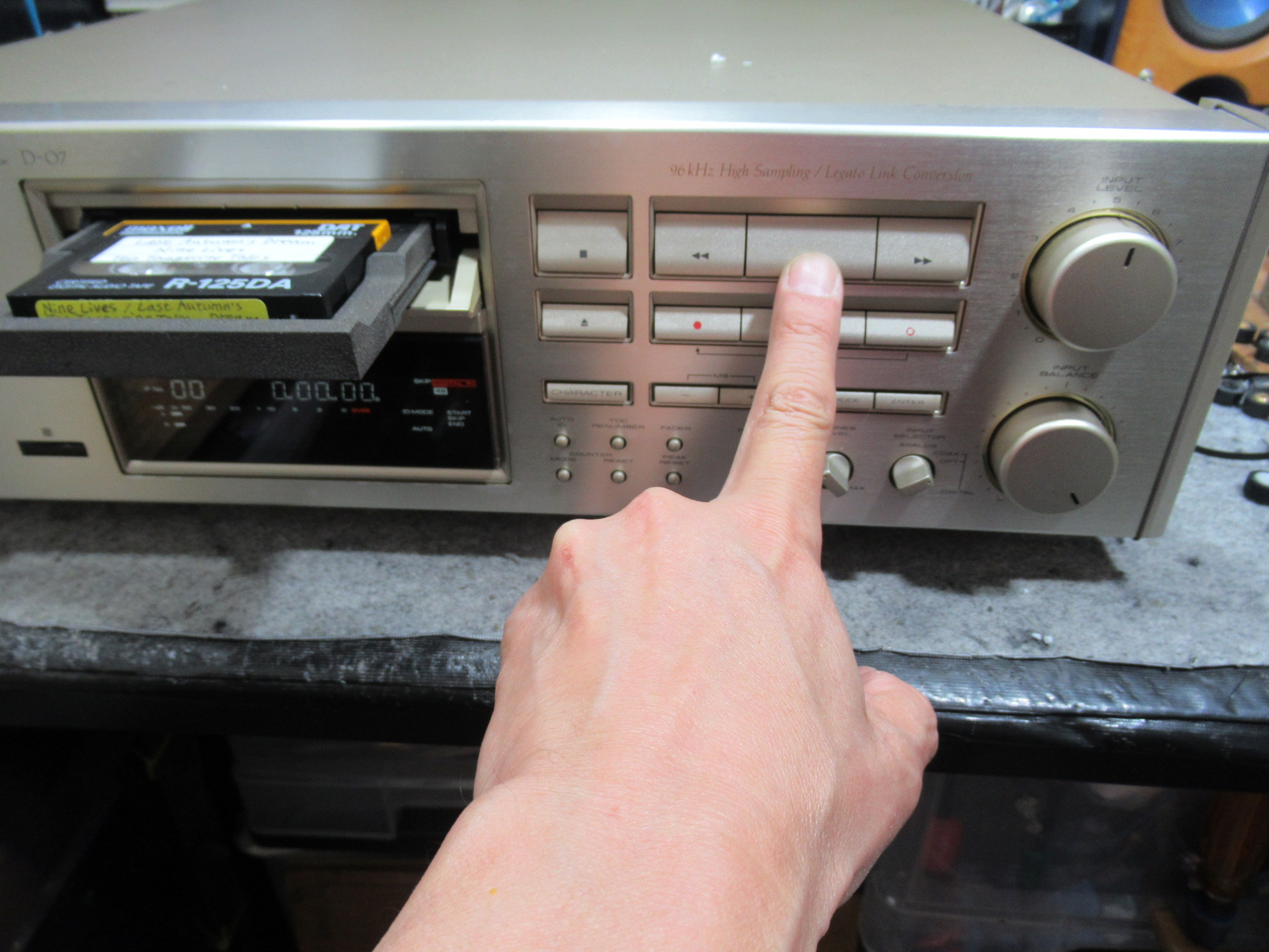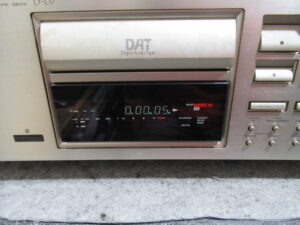 PIONEERのDATデッキ、D-07です。 トレイの蓋が開きっぱなしになったためテープで止められています。同じPIONEERでも下位機種のD-05では構造が異なるため同様の不具合は起きませんが、この …