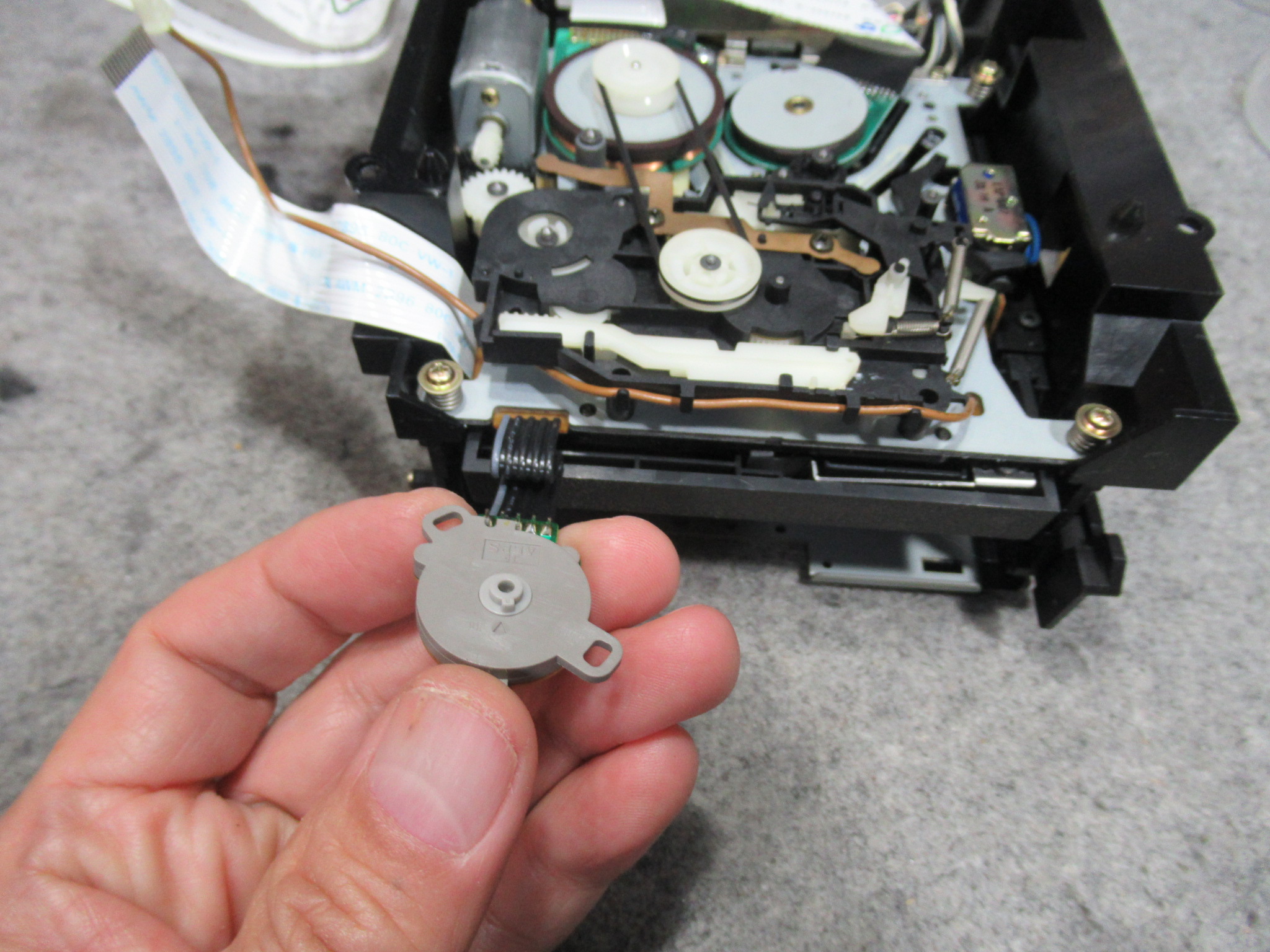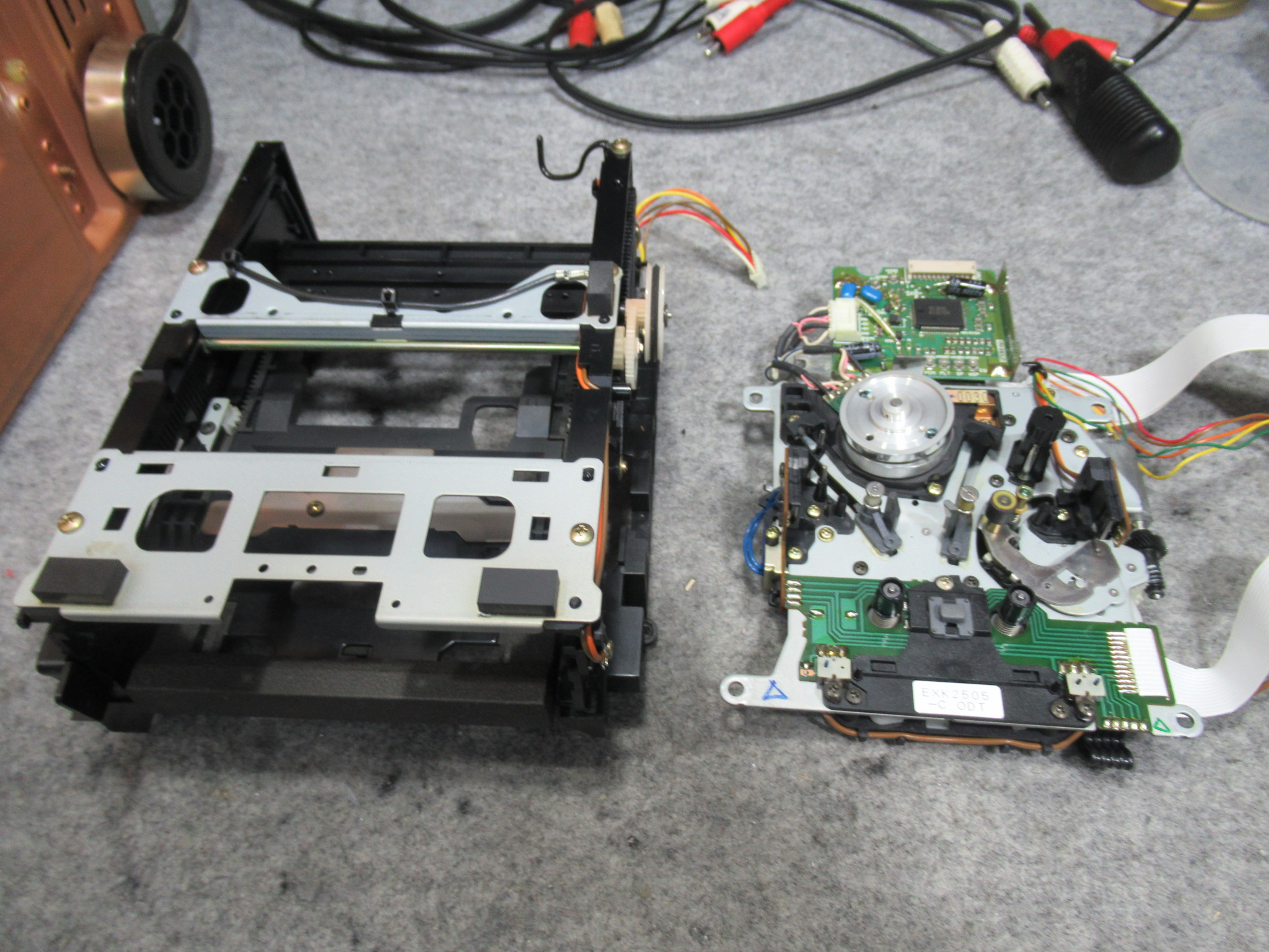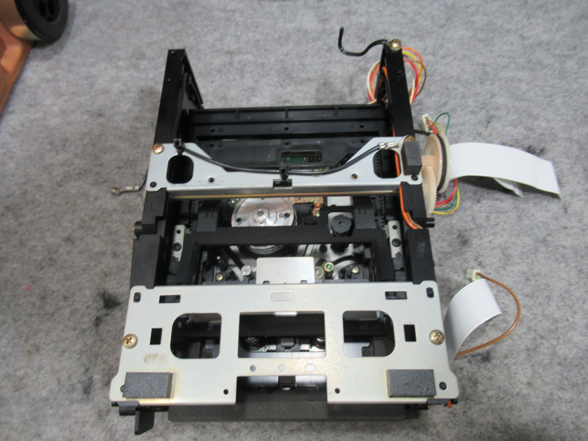 昨年当店で修理したD-07ですが、「トレイが開かなくなった」とご連絡をいただきました。 イジェクトボタンを押すと、ディスプレイに「OPEN」表示はされますが、トレイは開きません。 メカを降ろしました。 …