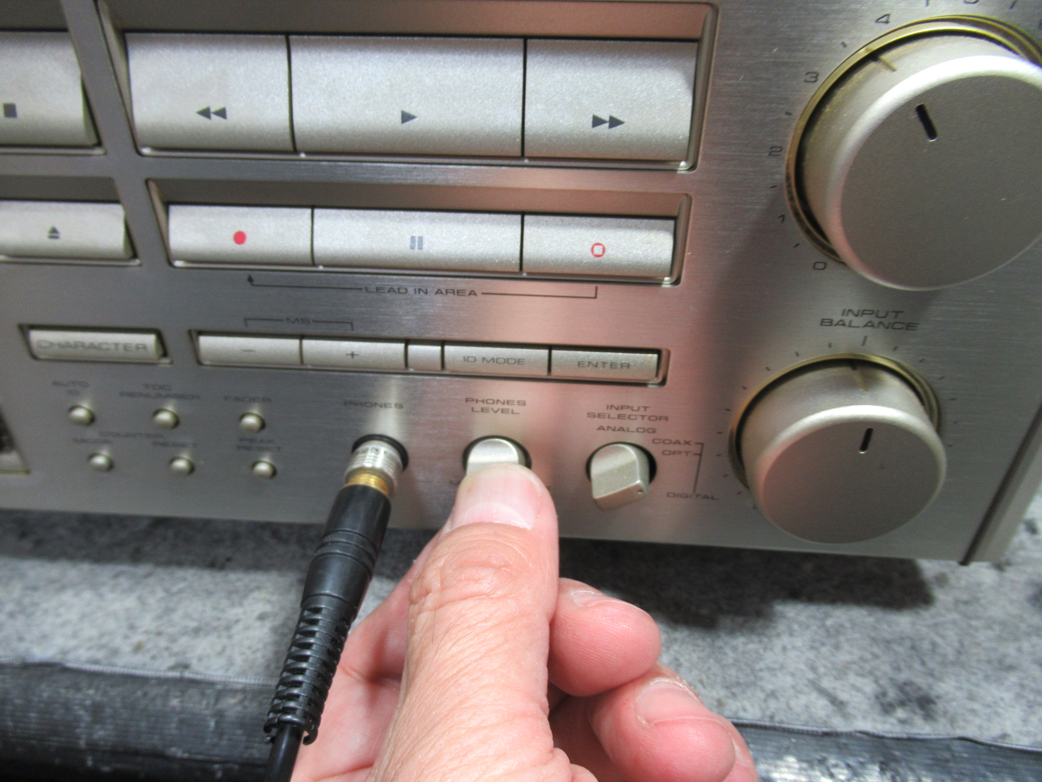 ヘッドホンVOLにガリが見られますので、背面から接点復活剤を処置します。
