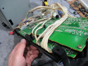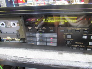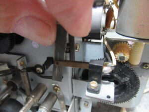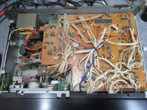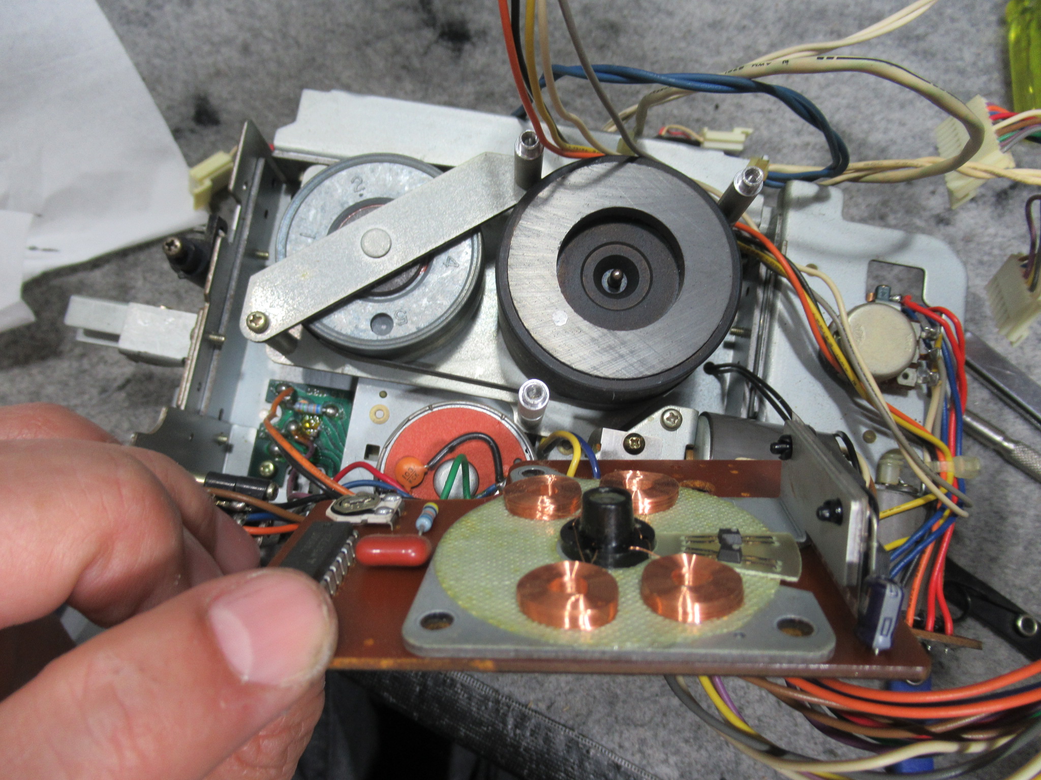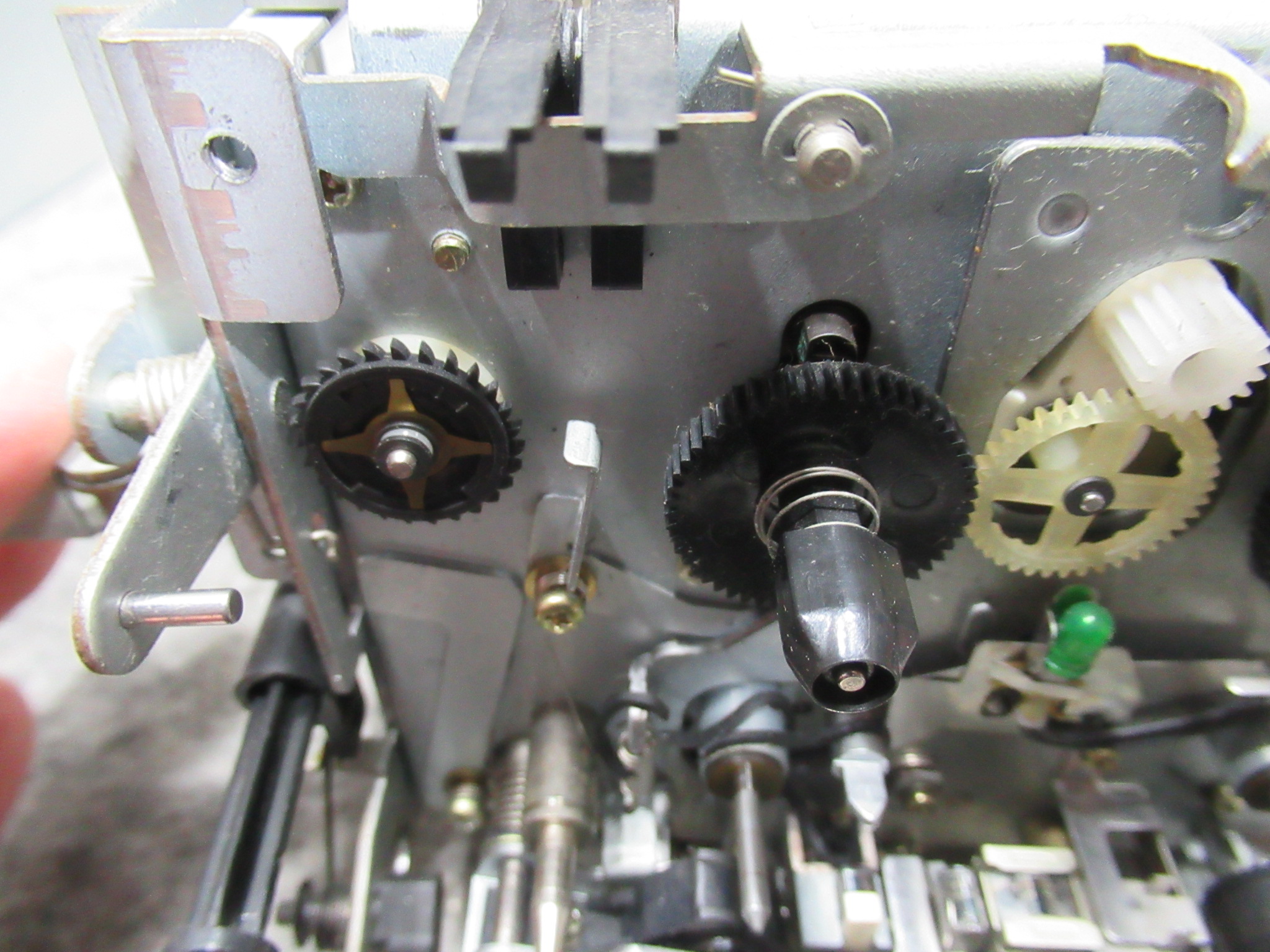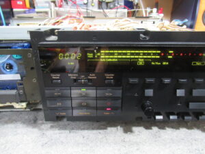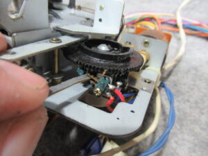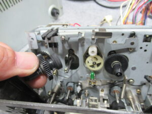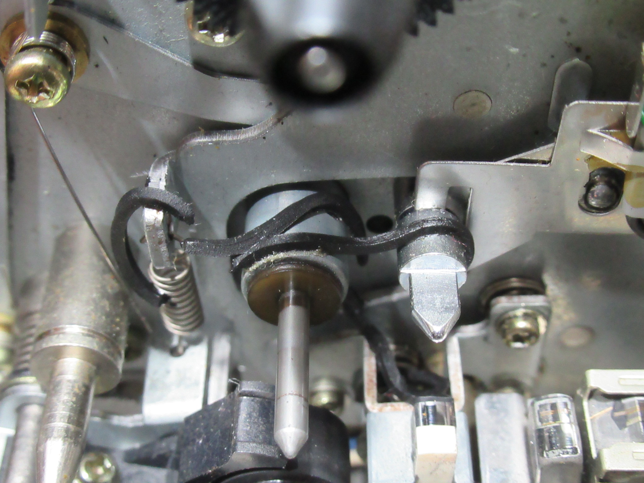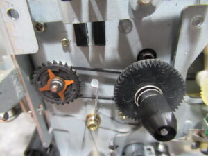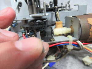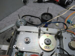 化粧パネルを取り外してみると、バックテンション用のベルトが無くなっていました。この状態では、テープ走行が不安定になりテープを痛めることがあります。