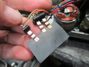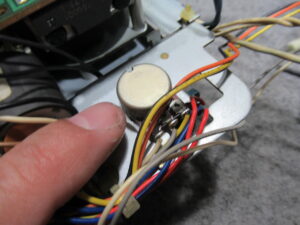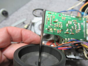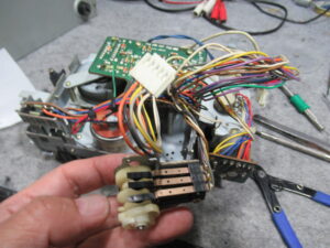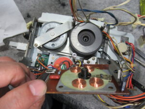 メーター・スイッチユニットを取り外します。調整用のVOLの背面の隙間に接点復活剤を処置します。