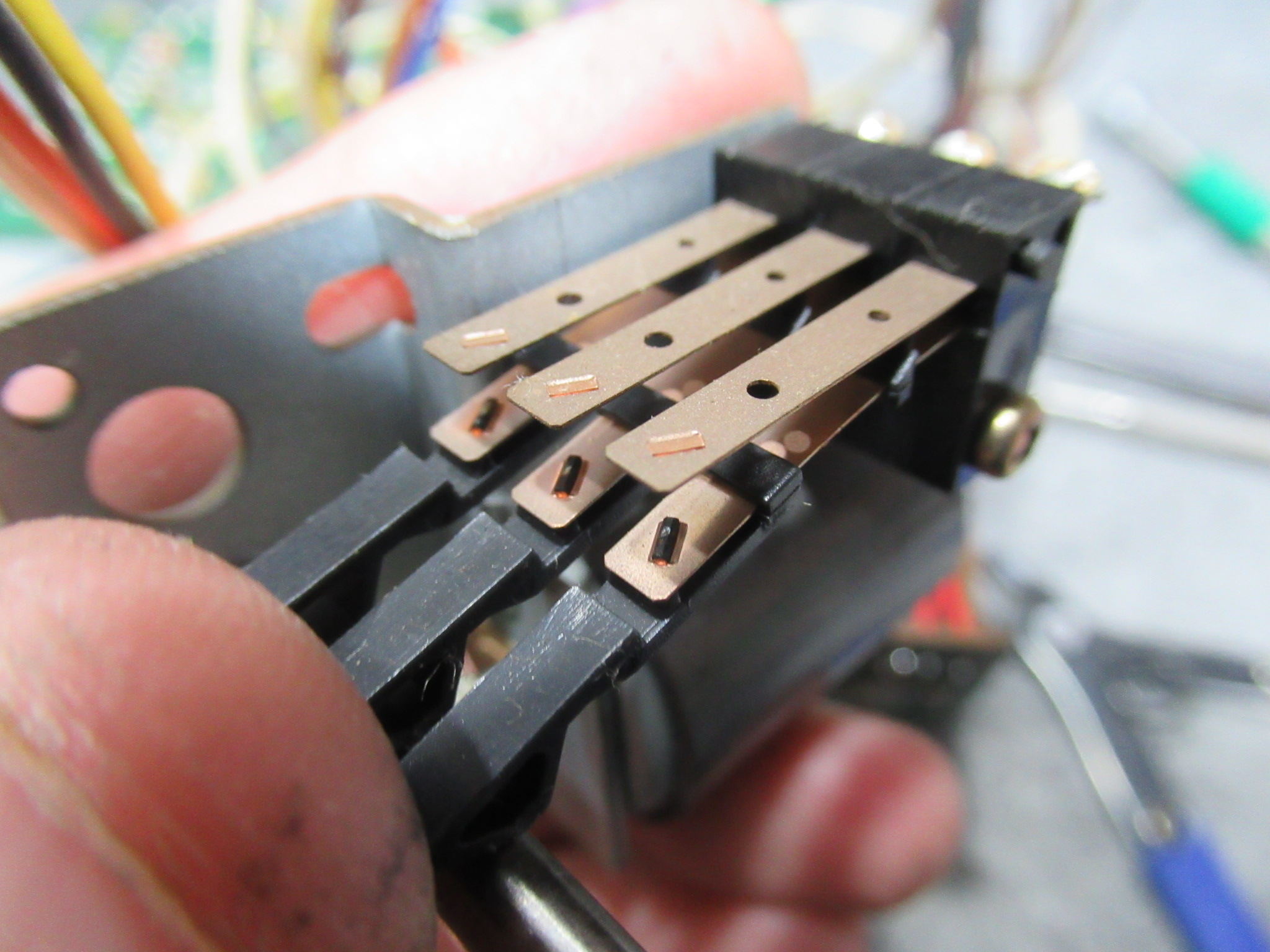 アジマス調整ユニットのリミットスイッチ接点を磨きます。