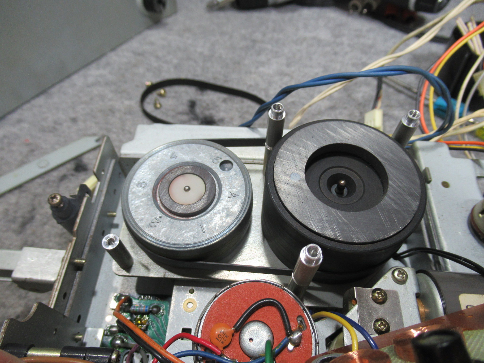 キャプスタンをグリスアップし、新しいベルトを掛けて組み立てます。