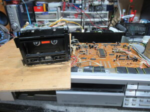 AKAI製3ヘッドデュアルキャプスタンカセットデッキ、GX-9の修理依頼をいただきました。