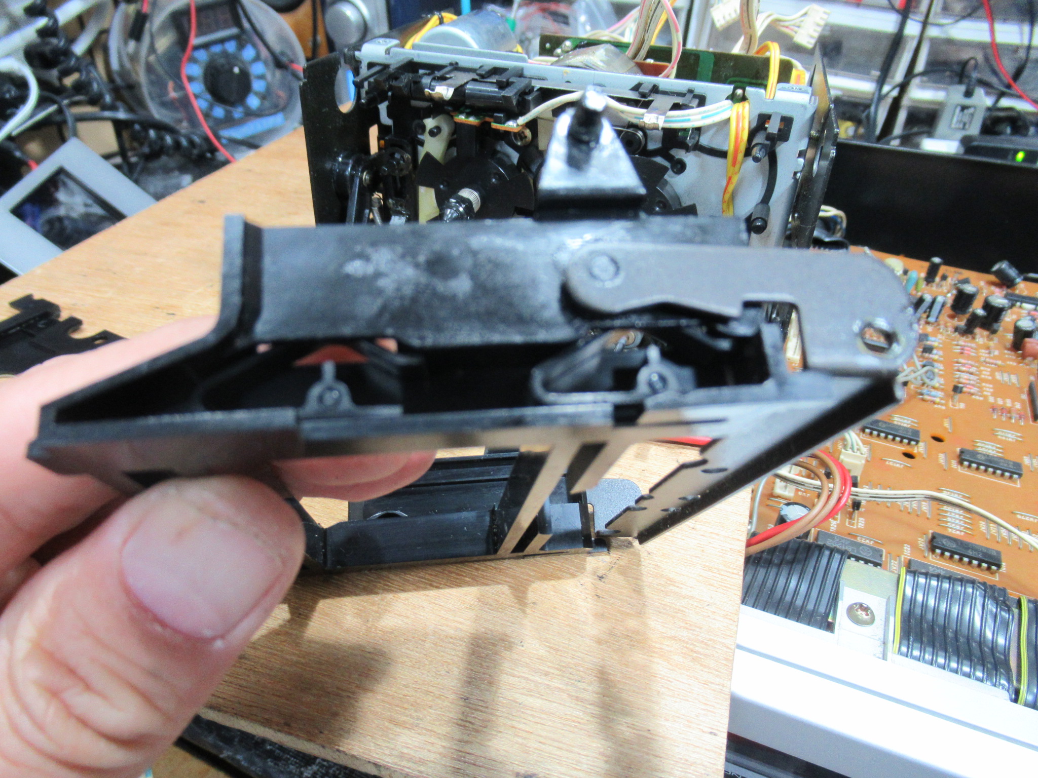 カセットホルダーと化粧パネルを取り外します。ホルダーに内蔵されているスプリングにヘタリはありません。