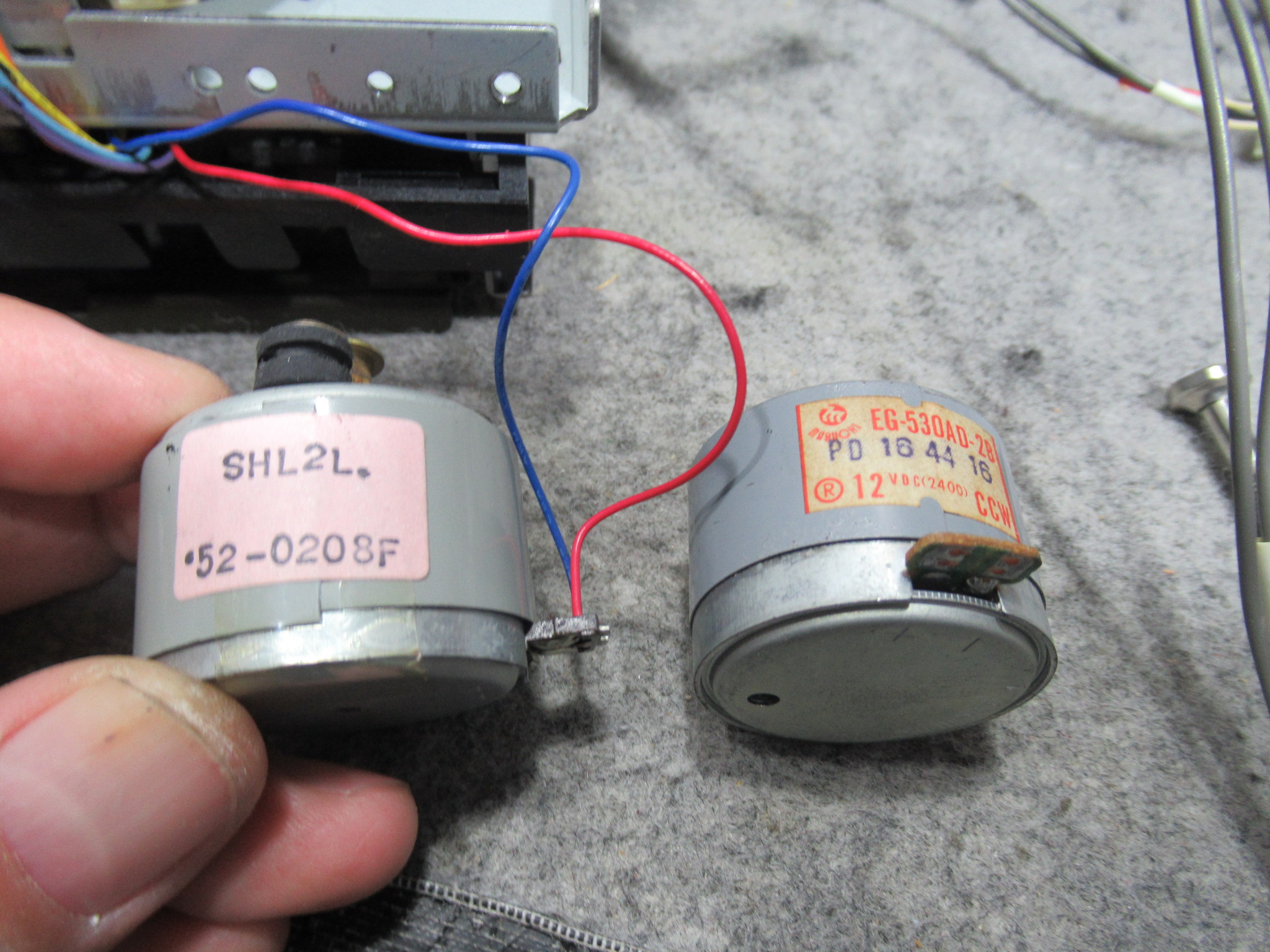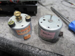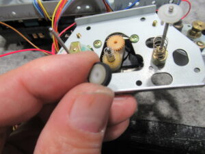 故障していると思われるキャプスタンモーターを取り外しました。モーターシャフトの回転がかなり重くなっています。これは交換しかありません。