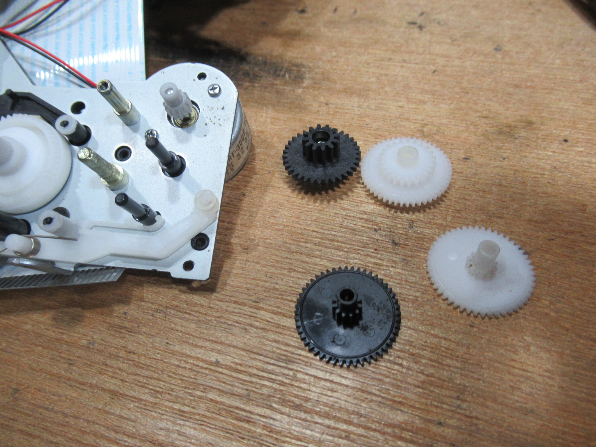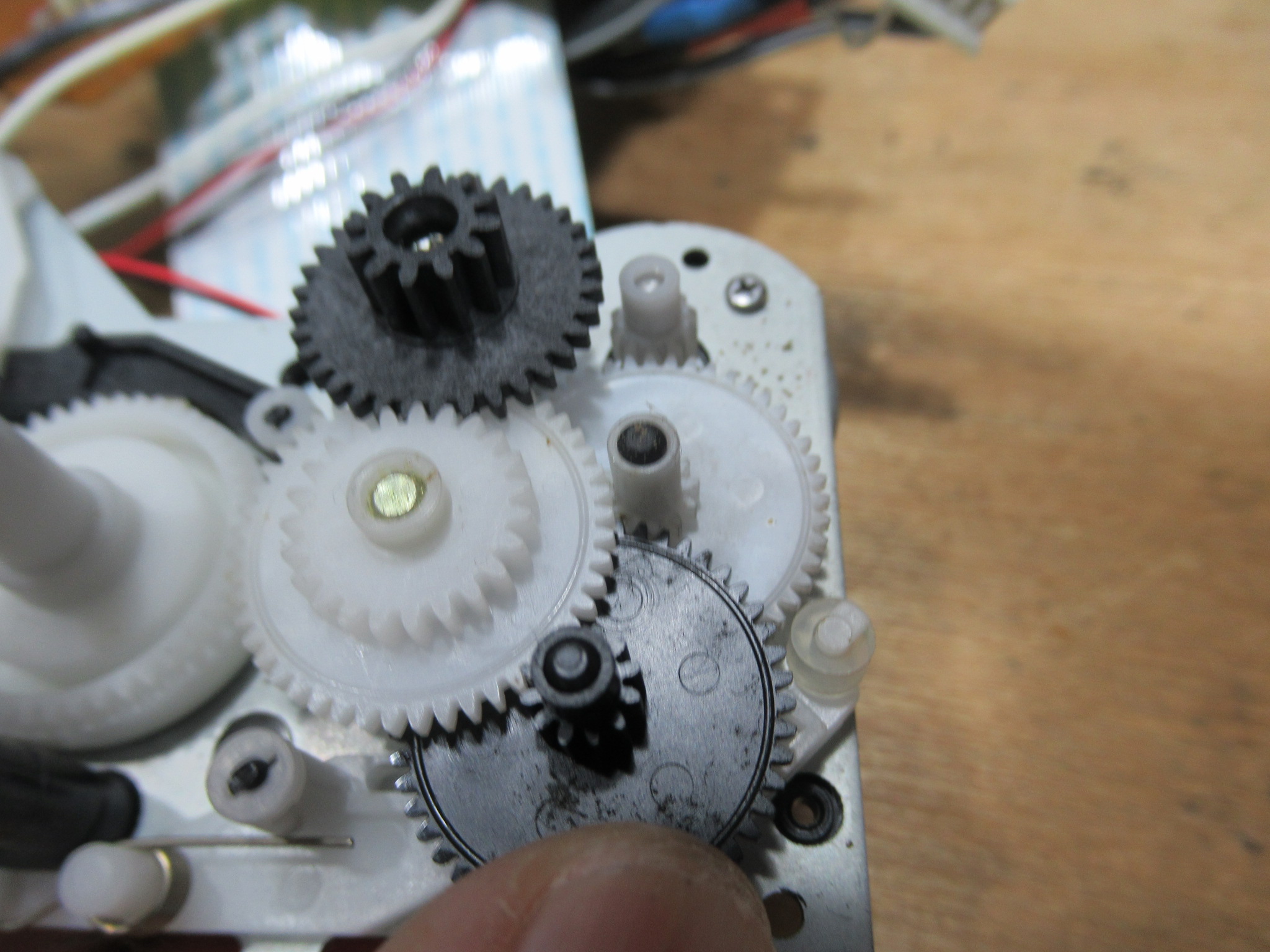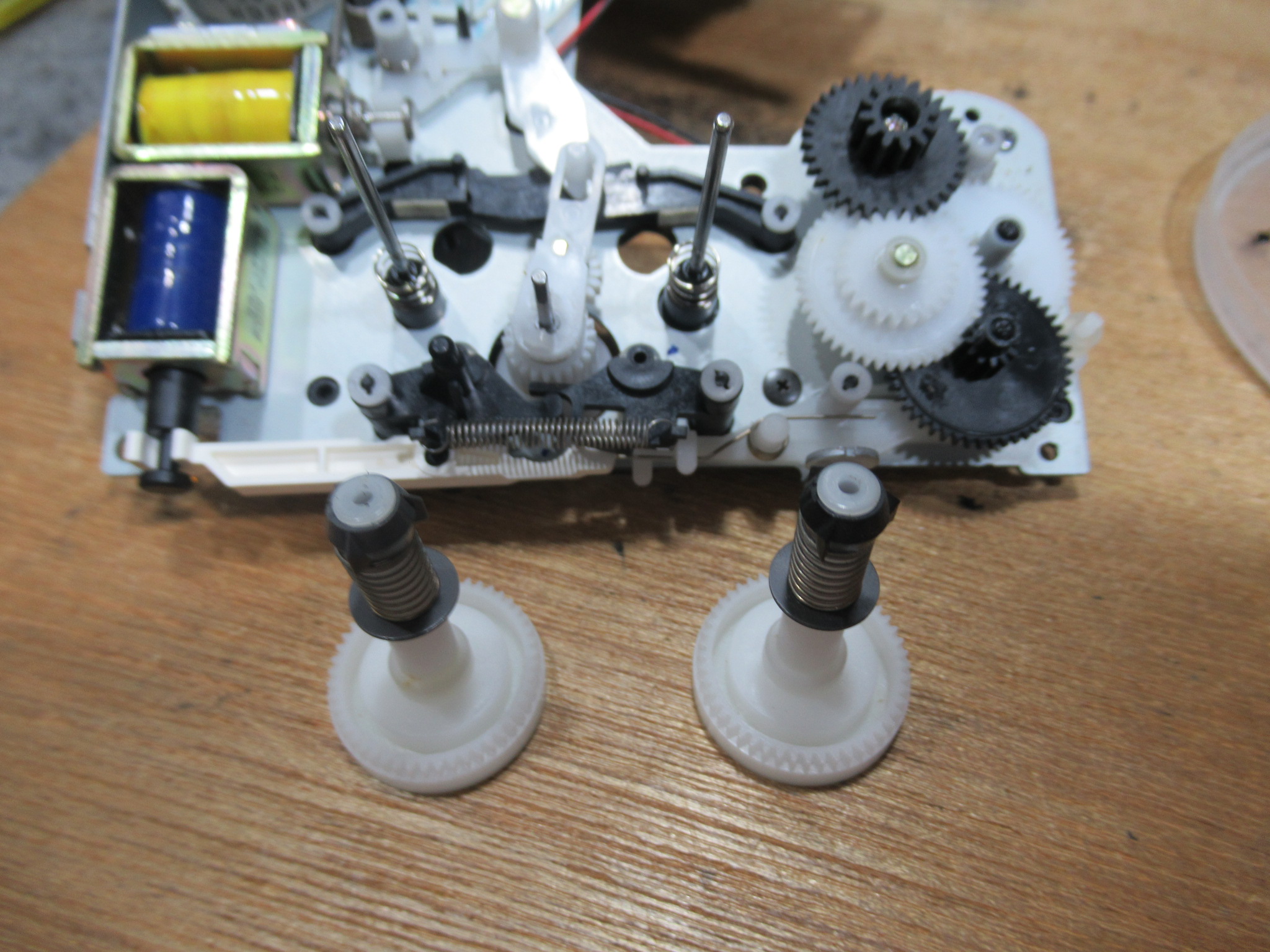 キャプスタンモーターユニットを取り外し、ガイドレールが変形によって狭くなっている箇所を修正します。