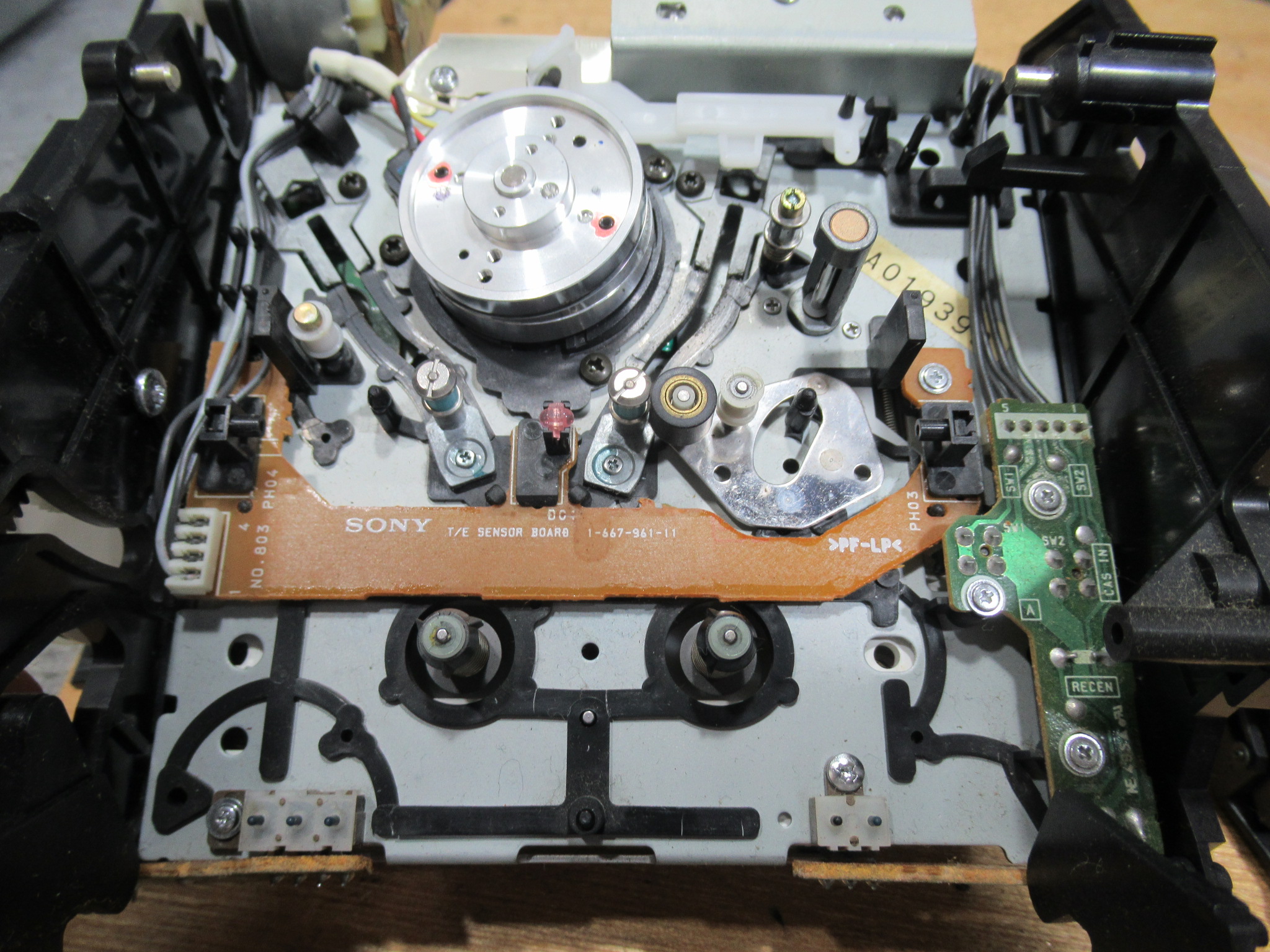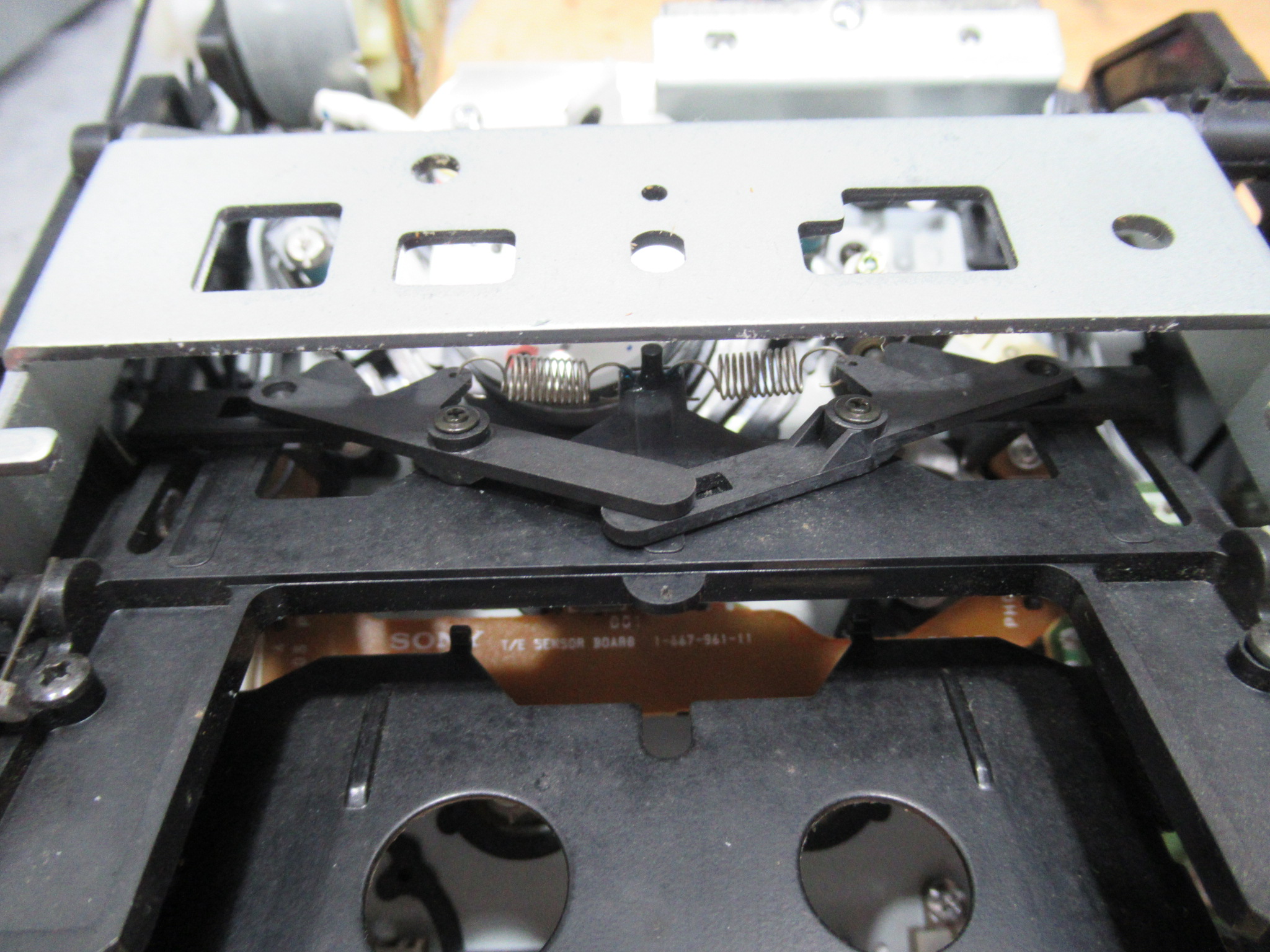 カバーを開けました。テープガイドが上がりっぱなしになっています。