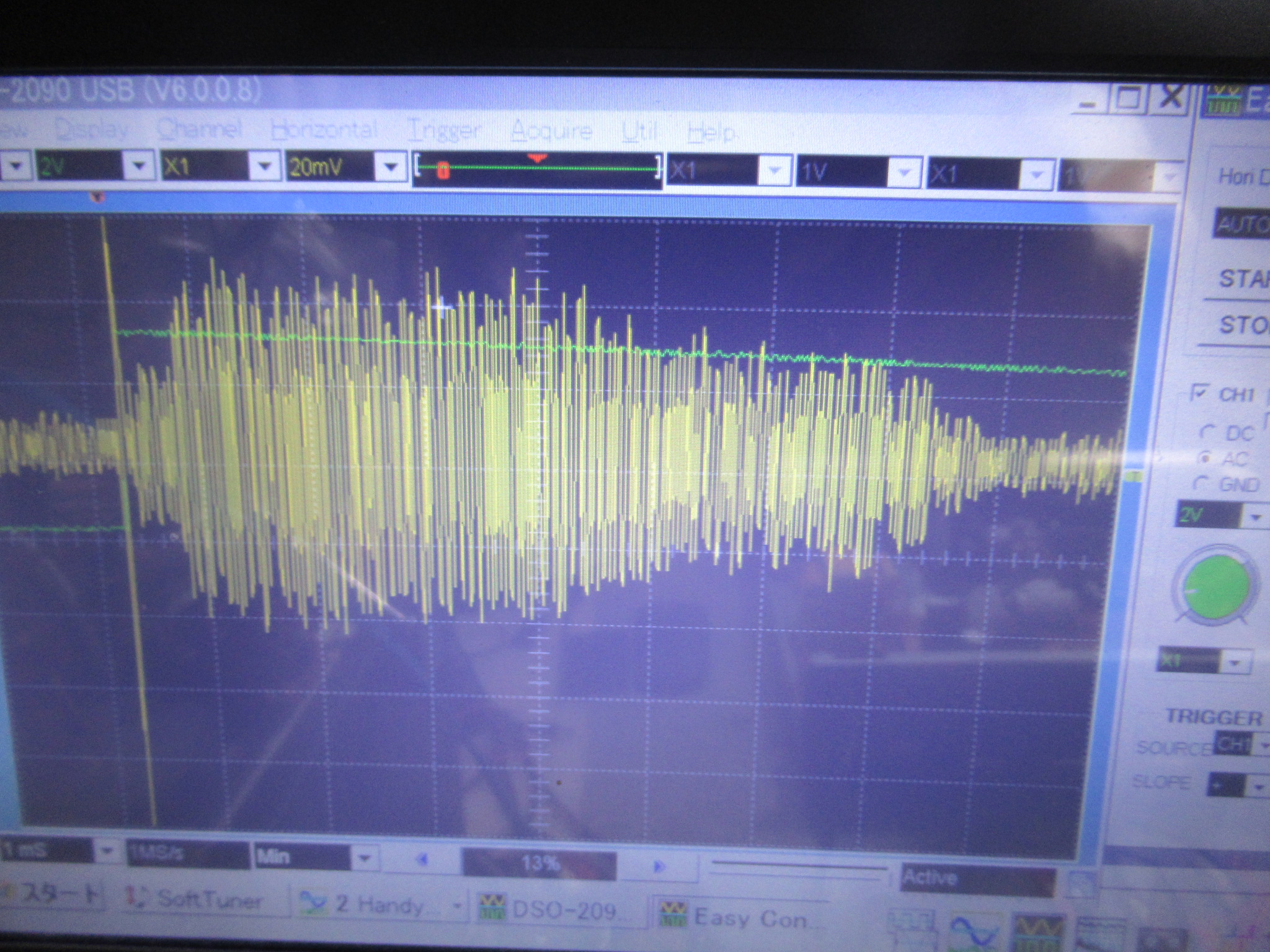 オシロスコープを接続してRFシグナルを確認したところ、テープパスが狂っていることがわかりました。そこで、オーナー様がお持ちの録音済みテープをお送りいただいて点検した結果に基づき、今回は現状のまま修理を終えることとなりました。