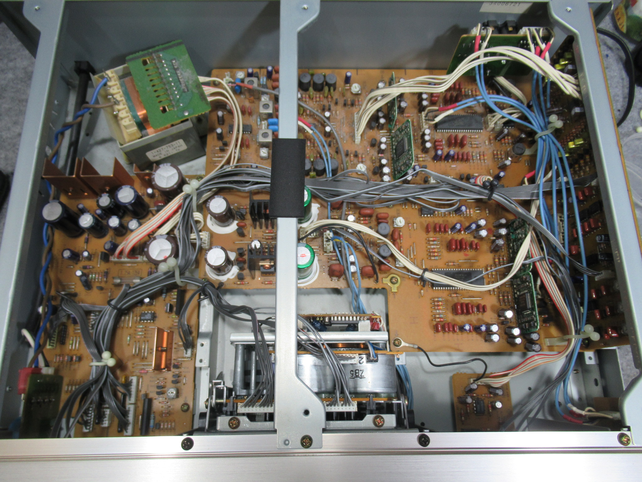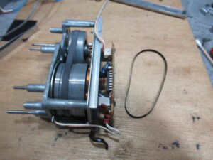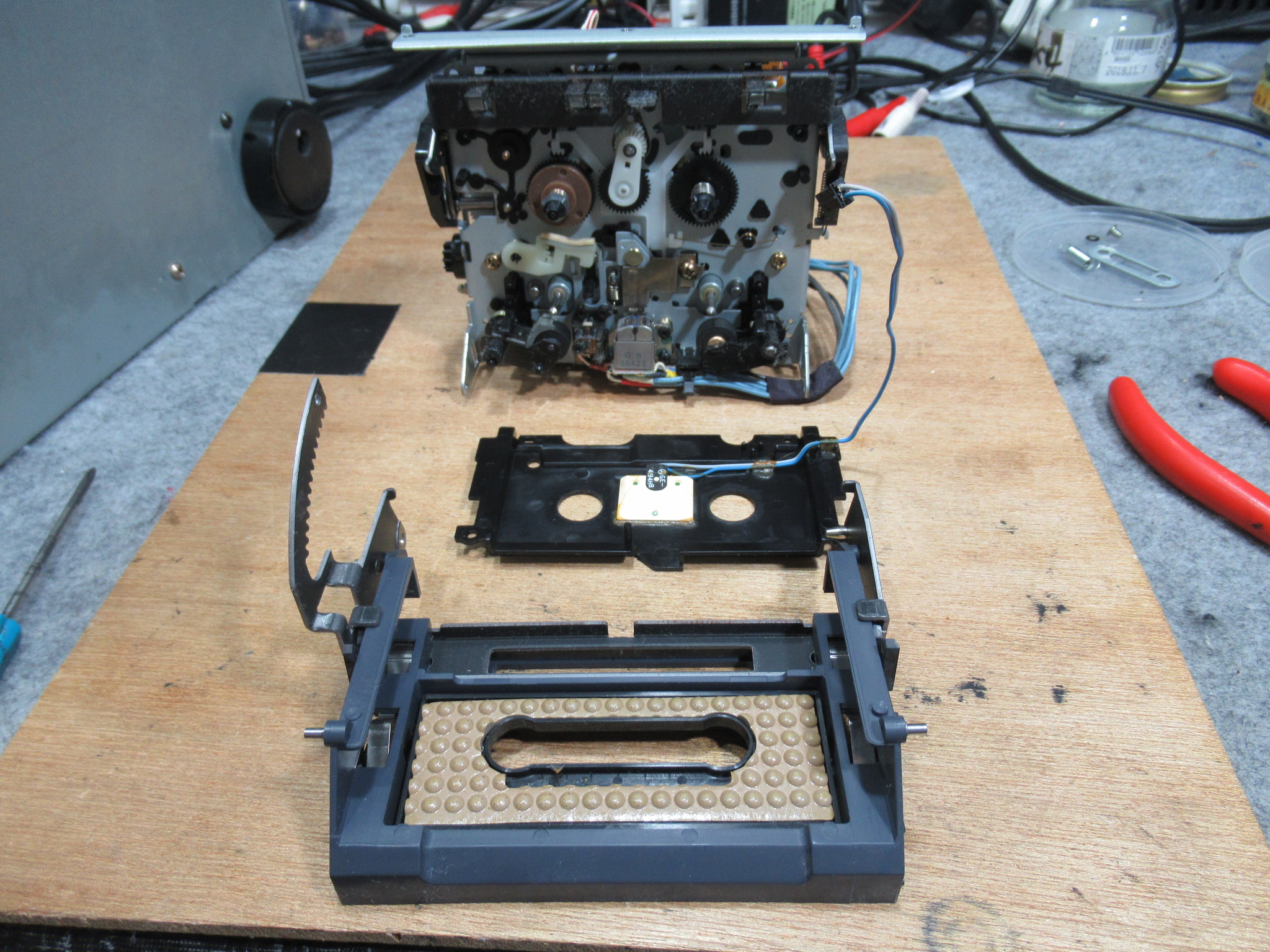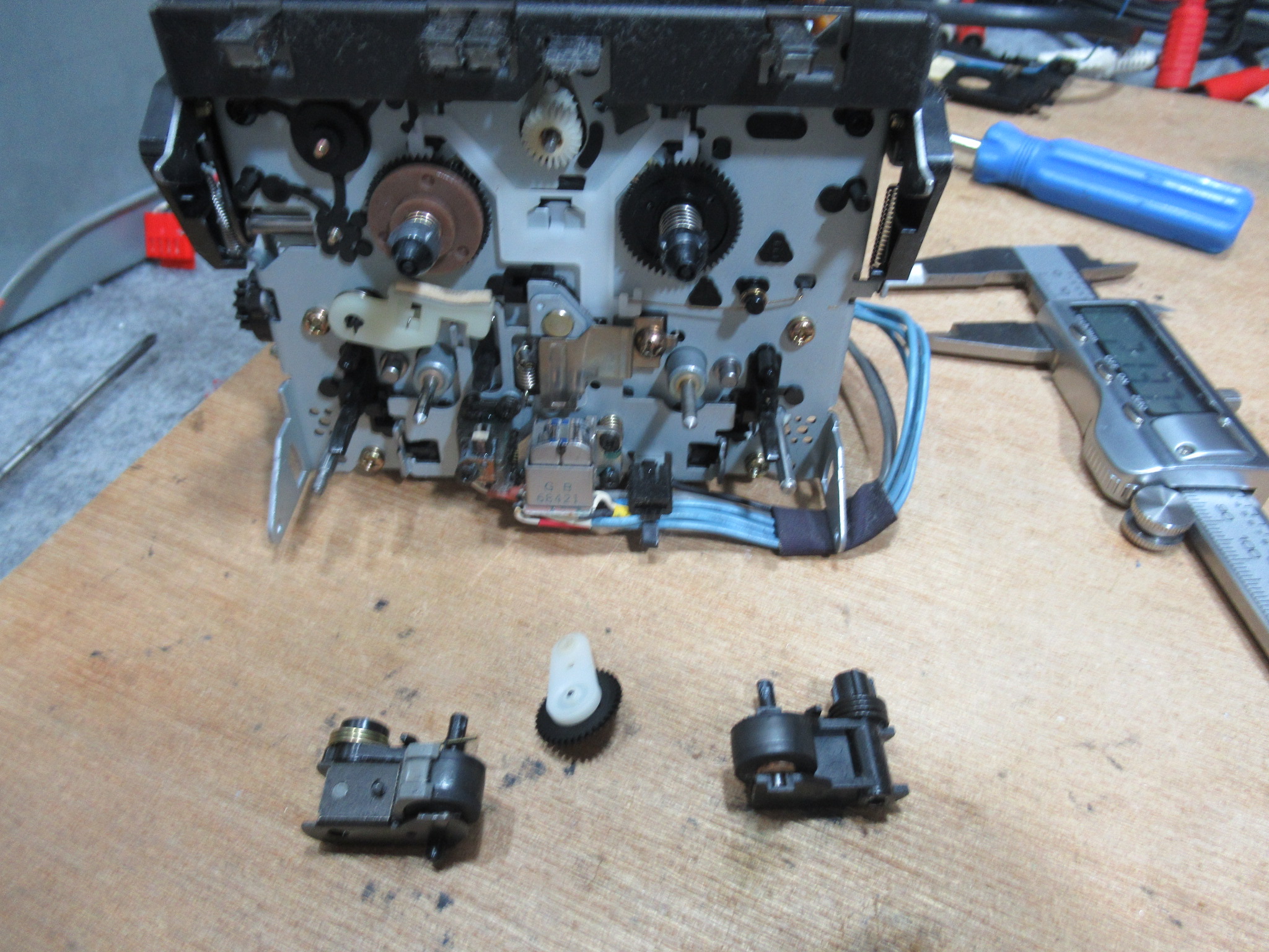 分解を進めます。黒色のアイドラーギヤは見たことがありませんので、過去に代替品と交換されたのでしょうか?