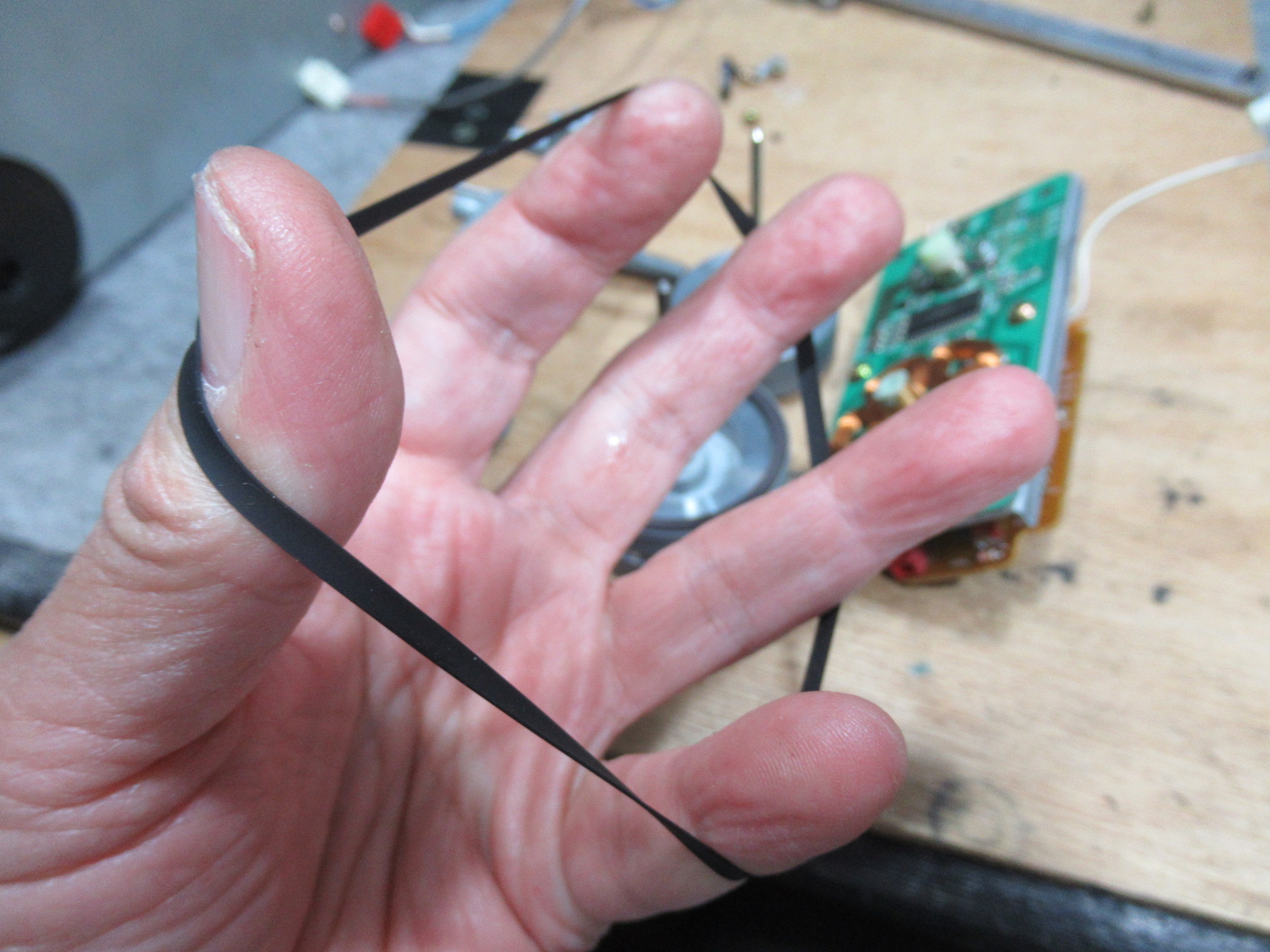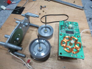 プーリーを清掃し、新しいベルトを仮掛けします。フッ素ゴムのベルトです。
