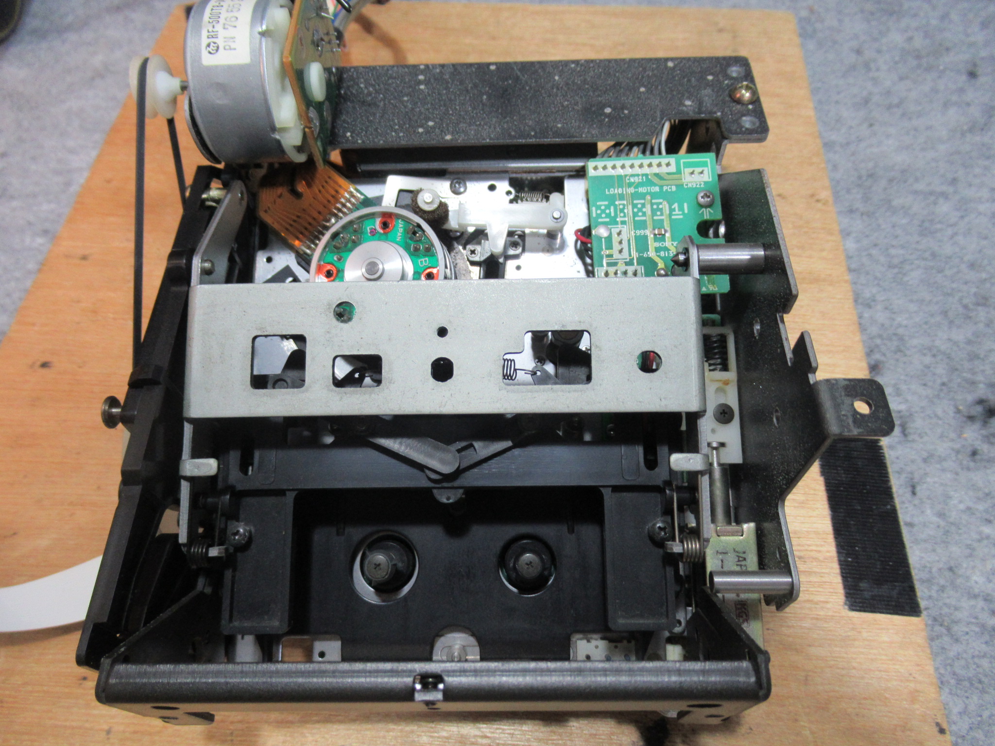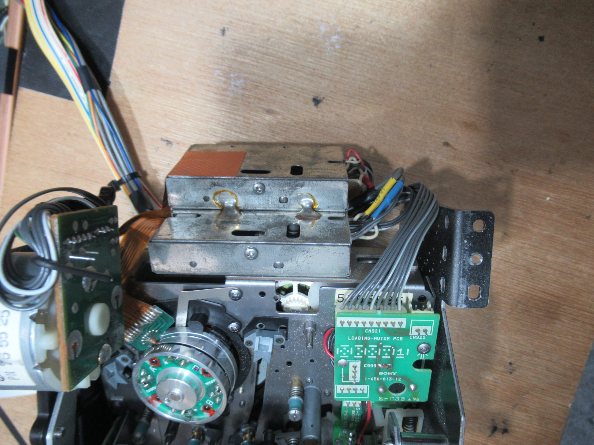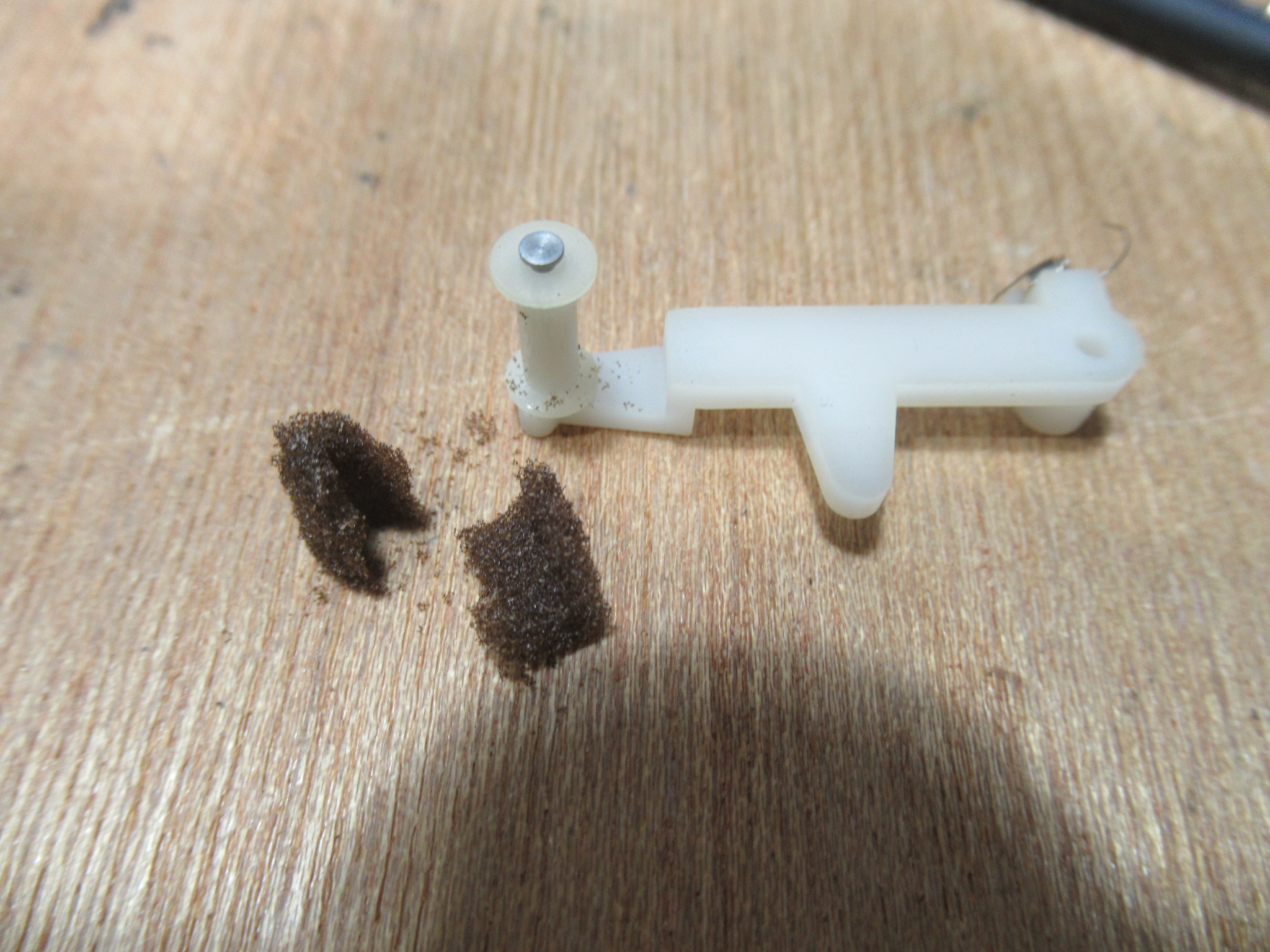 純正のスポンジ製ヘッドクリーナーは、回転ドラム表面を侵すことがありますので撤去します。すでに性状が変化してボロボロになっていました。